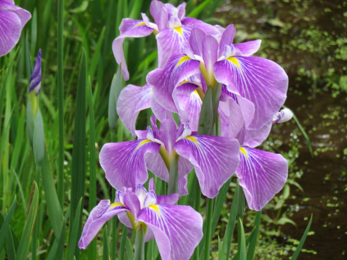 花菖蒲には数え切れない品種があります。日本の山野に自生するノハナショウブを選抜し、交配を繰り返すことで新たな品種が誕生しました。品種改良が盛んに行われた地域別に、江戸系、伊勢系、肥後系、長井系に大別されています。佐倉城址公園の菖蒲田では各々の種類の違いを観察することができます。