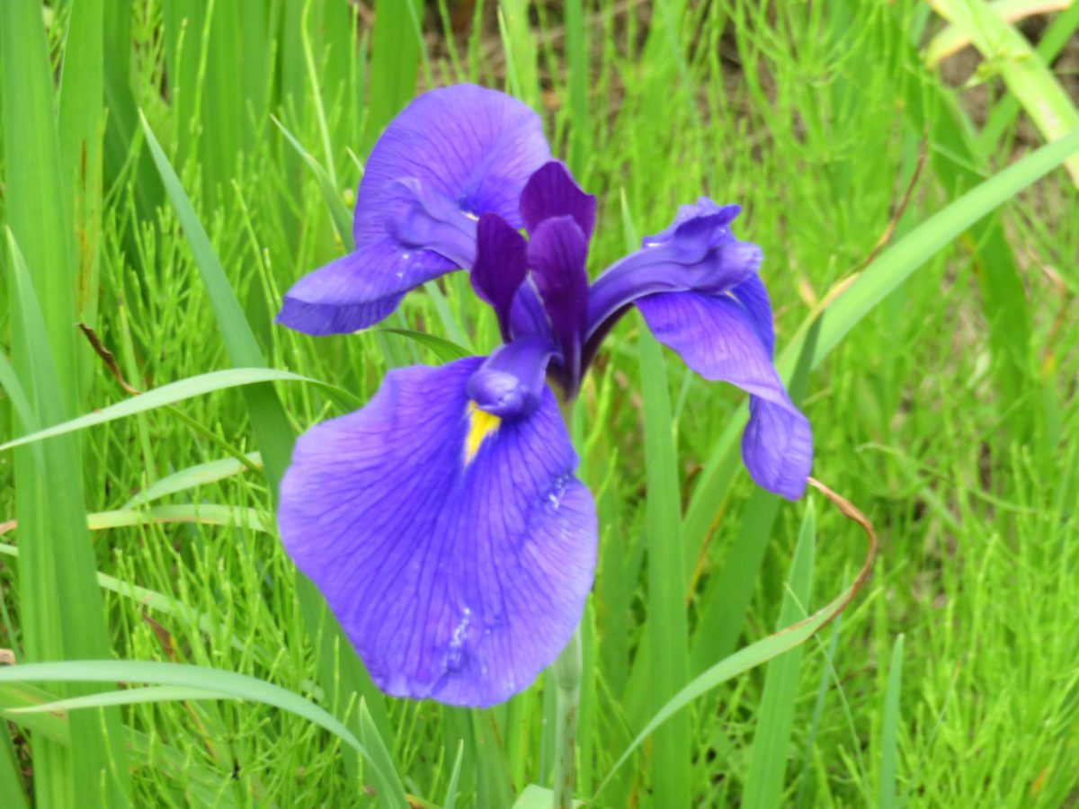 花菖蒲の色彩は青紫色、藤色、赤紫色、白色の種類が多いのですが、佐倉城址公園の菖蒲田では黄色の花菖蒲が栽培されているエリアがあるのが大きな特徴です。