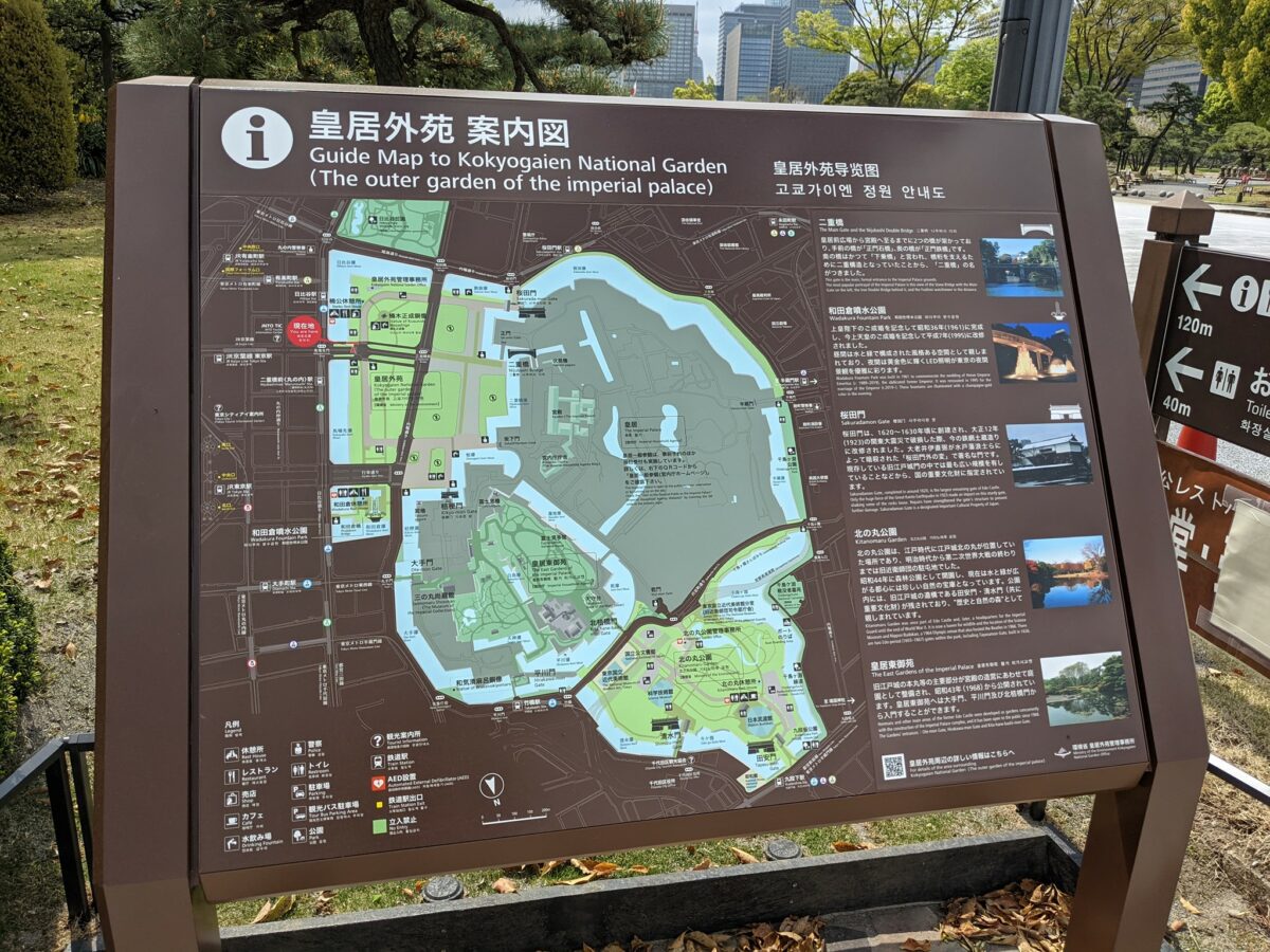 こちらは現在の皇居一帯の案内図になります。この案内図ですと皇居の左上のエリアが皇居外苑になります。この外苑の一角に楠木正成公(楠公)の銅像、皇居外苑楠公売店、楠公レストハウス等があり、桜が綺麗に咲いています。二重橋を正面に見据える楠公の像は、1333年(正慶2年)隠岐の島から還幸途次の後醍醐天皇を兵庫の道筋でお迎えした折の勇姿を象ったものですが、宮内庁と住友の歴史が刻まれた貴重な像でもあります。それについては後程触れて行きたいと思います。