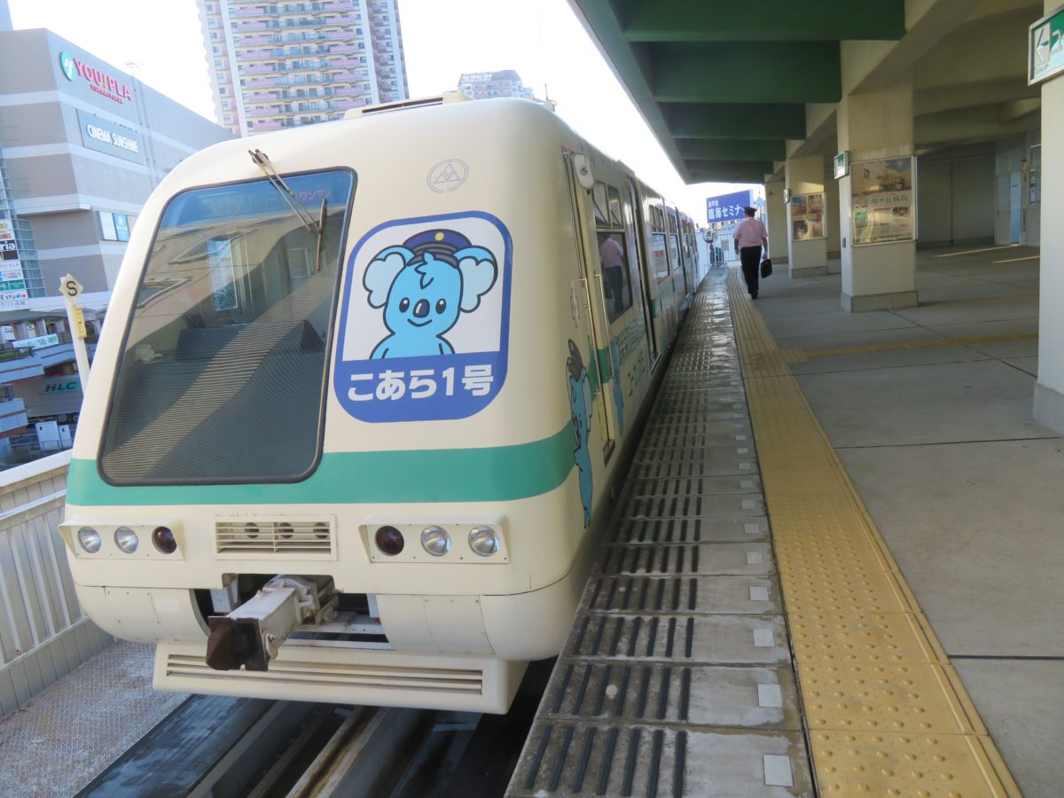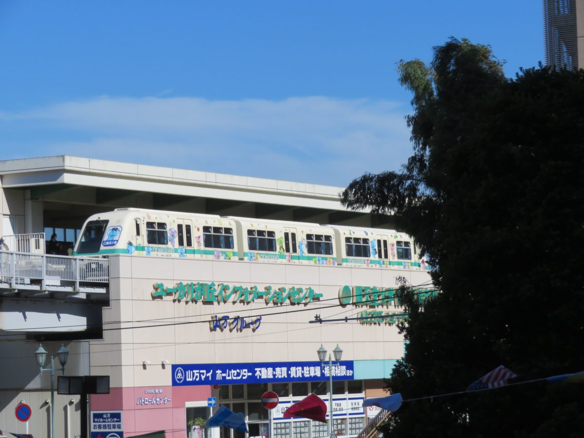 女子大駅に停車する山万ユーカリが丘線の車両