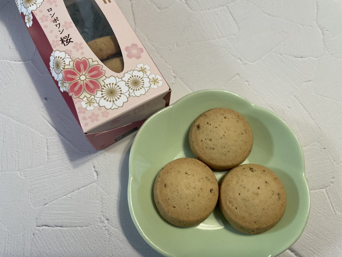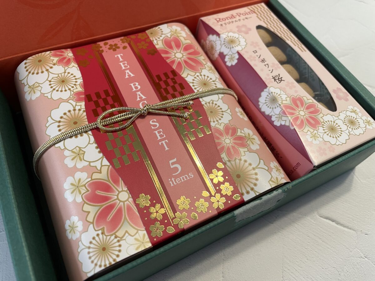 「お茶とお菓子 和み」には、オリジナルクッキーロンポアン桜もセットになっています。こちらも、桜と日本の伝統的な柄を組み合わせたパッケージで春らしさを感じます。