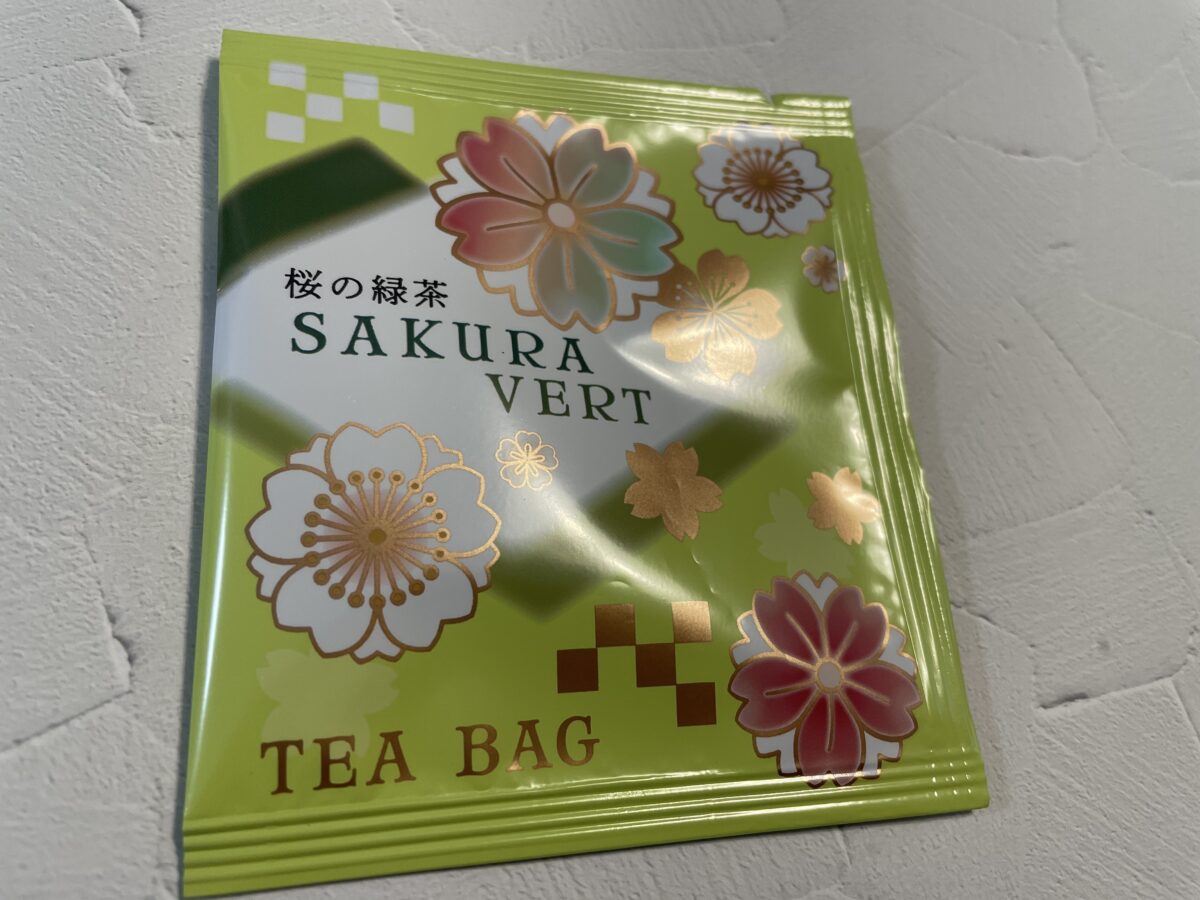 緑茶に桜の葉をブレンドしたもの。上記の紅茶ベースのものよりパッケージを開けた時は桜の香りはしませんでしたが、いざお茶を入れると、桜の葉の香りが優しく広がります。飲むとほっとするので、リラックスタイムにもオススメのお茶でした。