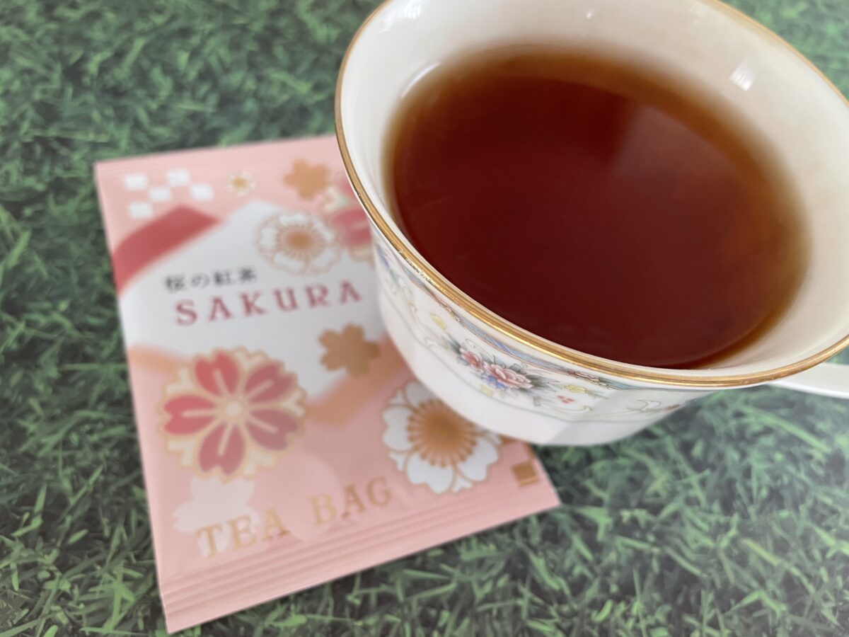 大島桜の葉を使用した紅茶で、パックを開けるとすぐに桜の香りがふわっと香り、お茶を入れる前から春らしさを匂いから感じました。ほのかな塩味がして、まるで桜餅のよう!和洋菓子どちらとも相性がよさそうです。