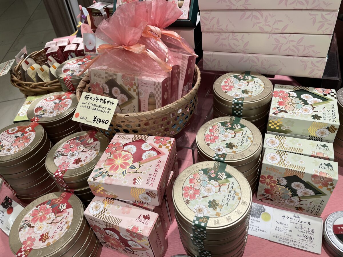 ルピシアの春の限定シリーズで、ひときわ華やかなスペースとなっているのは、「桜のシリーズ」
