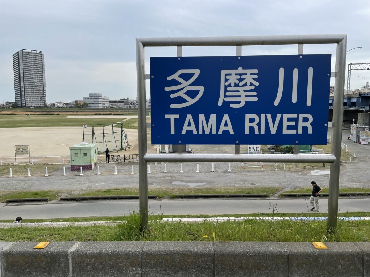前方に大きな橋が見えるのは、「大師橋」。その先は、「羽田空港」です。大師橋まで土手の遊歩道を歩き、太子橋を超えて川崎市へ歩く散策コースも人気のコースのようでした。