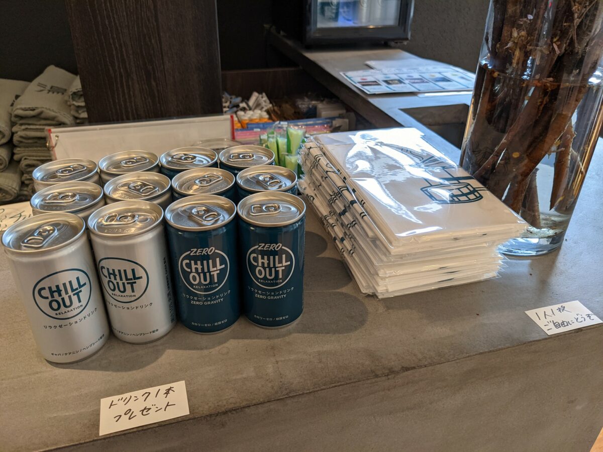 オリジナルフレーバーとGABAをはじめとした4つのリラックス成分を配合したドリンクを味覚で楽しむことが出来ました。味は割とスッキリする感じです。また、先程の湯ぶねにはドリンクの成分の入った香りが使われているそうで、嗅覚でも楽しむことが出来たようですが、ライターが入浴する時間には沢山の人で臭いは薄まりあまり感じませんでした。営業時間開始後の香りが新鮮なうちに行けば、香りを感じることが出来るかと思います。