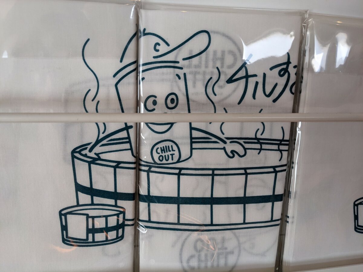 銭湯内に桜の装飾が施されており視覚を楽しませてくれます。枝は本物の桜で花の部分は造花とのこと。湯ぶねに桜の花びらが浮かんでいて、触って楽しめる(触覚)、とても幻想的な体験でした。「CHILL OUT」は落ち着くといった英語になりますが、桜の「散る(チル)」と掛詞になっています。