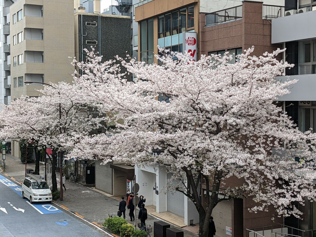 お店の前に綺麗な桜が咲くという素晴らしい出店ロケーション。近くには(株)プラチナムプロダクション等があります。