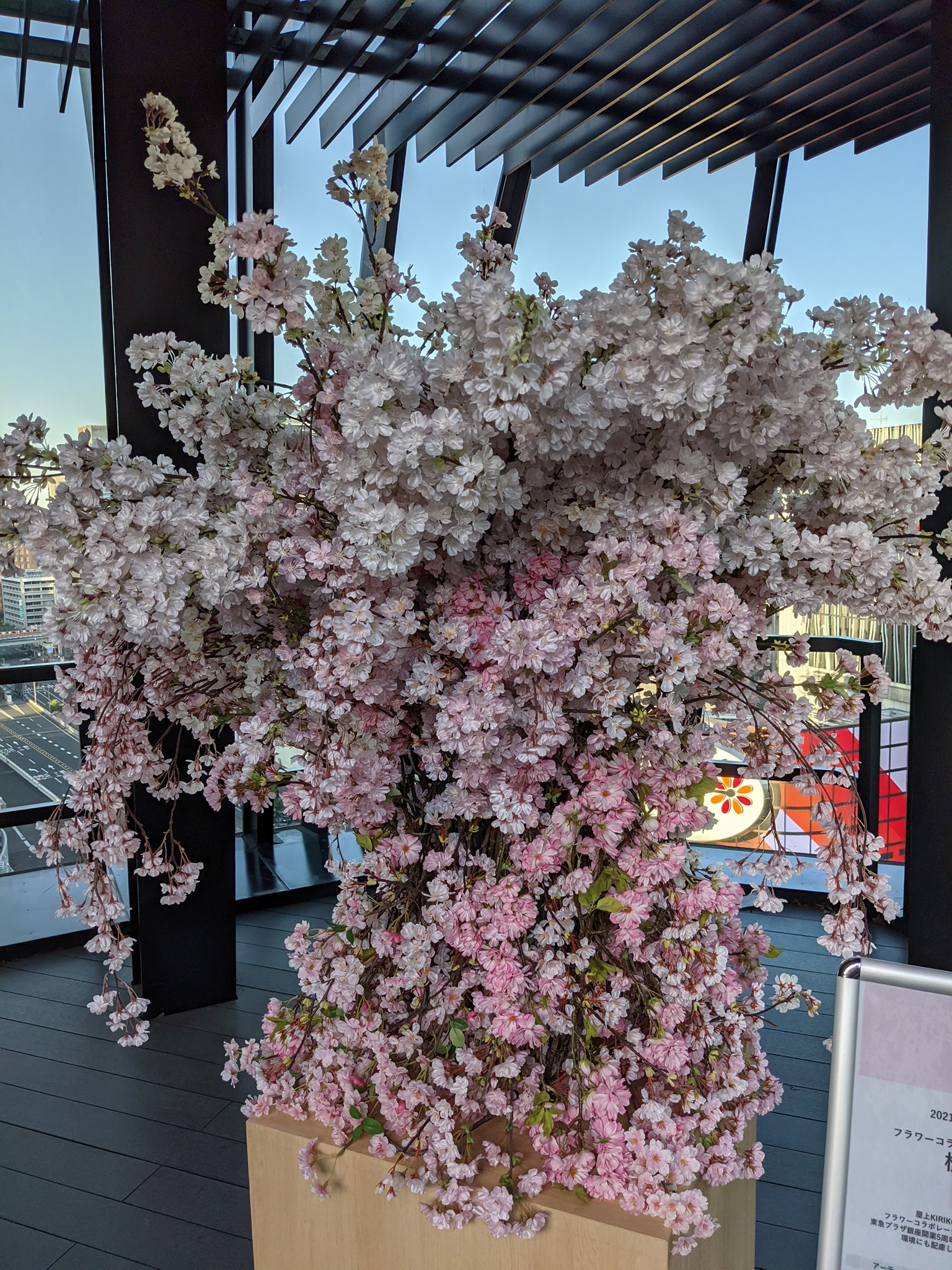 東急プラザ屋上のKIRIKO TERRACEに来ました。銀座が一望出来、綺麗な花などの植物も楽しむことができるので、小休止にもってこいの場所となりますが、こちらにも桜まつりの展示が用意されていました。