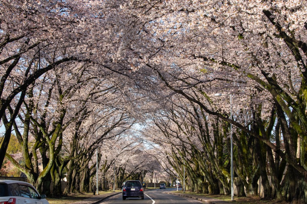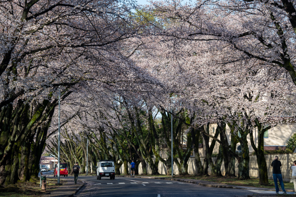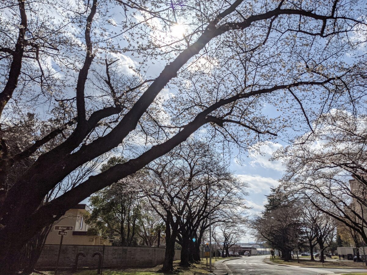 これらの木々は「関東施設整理統合計画(Kanto Plain Consolidation Plan)」の一部として1970年頃に植えられました。その計画の中で、基地内の病院・映画館と言ったような当時他の基地にもあった施設を統合するものでした。実際に元の桜の樹齢は50年以上で、3~4年ぐらい前に枯れてしまった桜を4~5本程度取り除き、植え替えをはじめました。なので「古いものもあれば、新しいものもある」という状態です。このことが意味するのは、桜が成長し続け、今後数十年続くことを意味します。