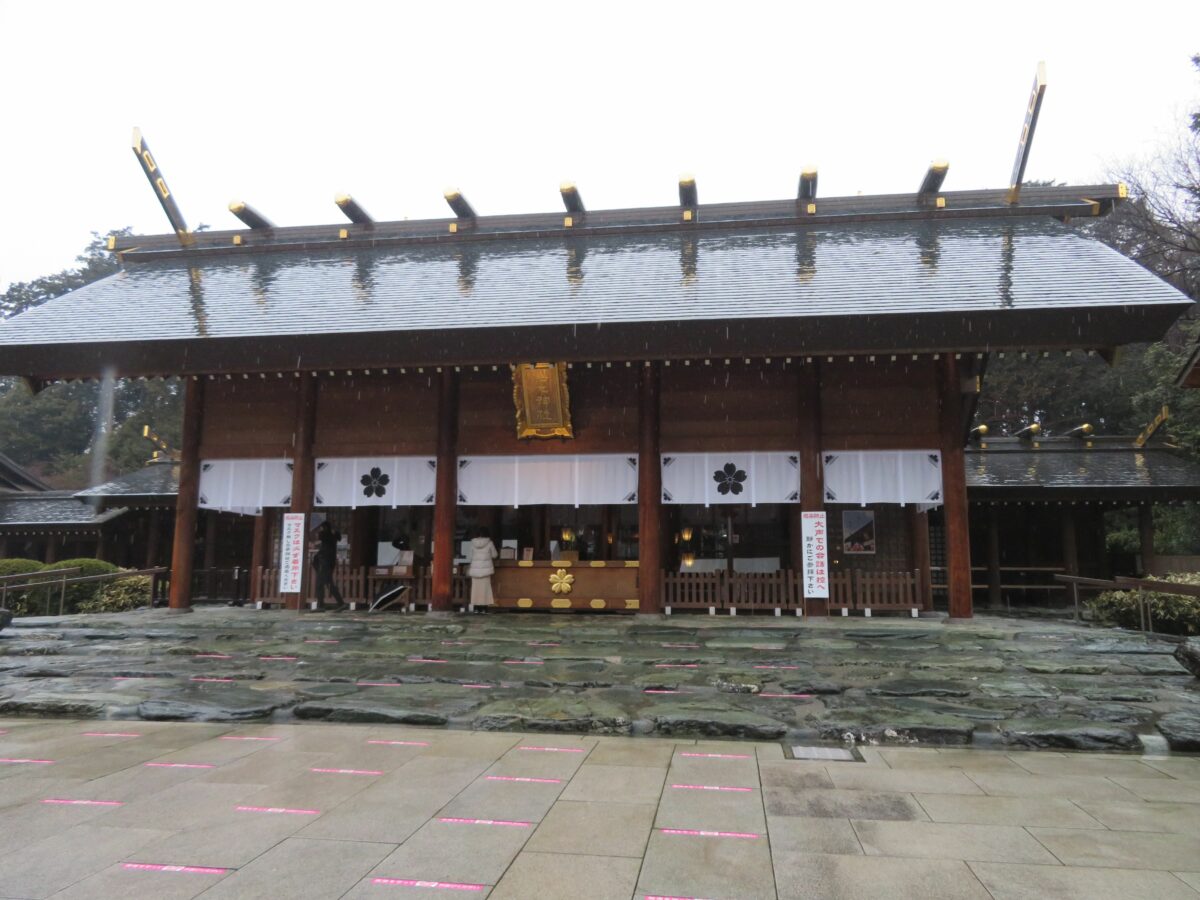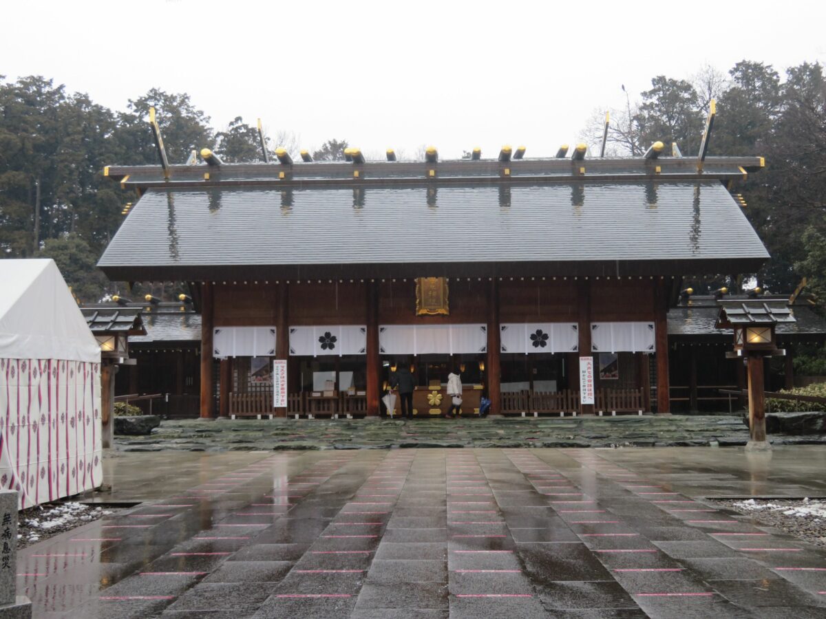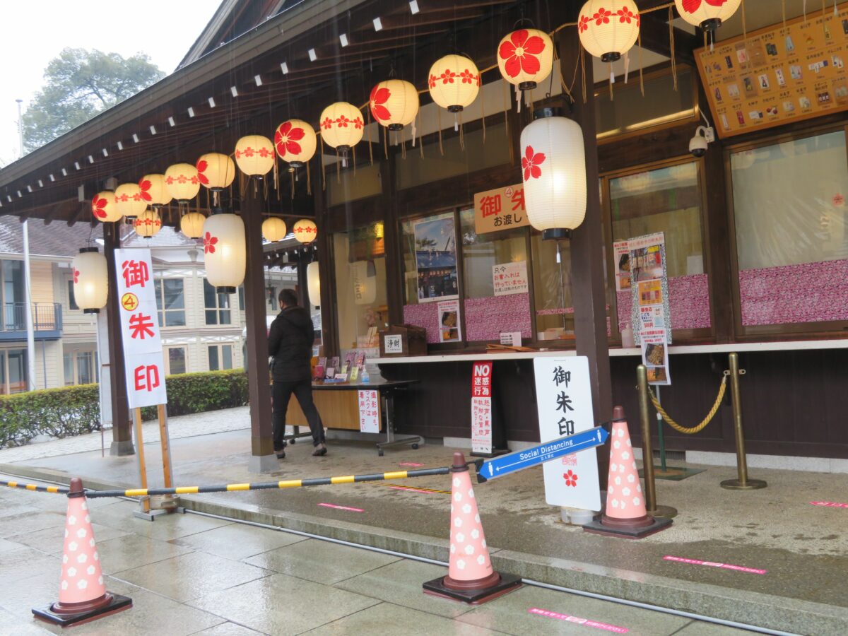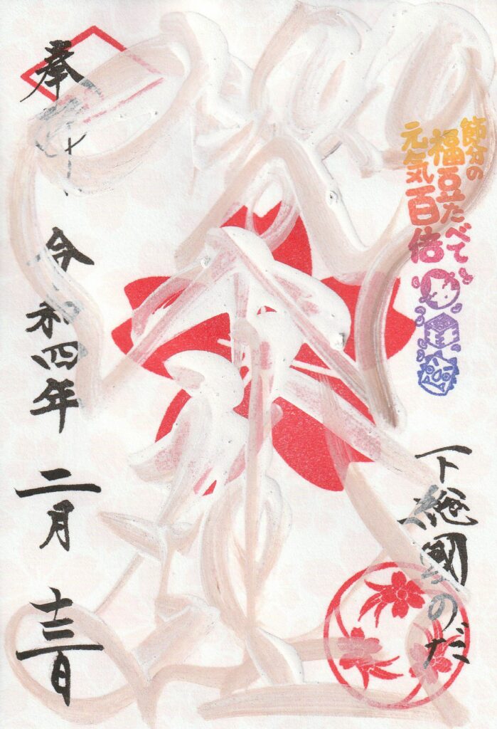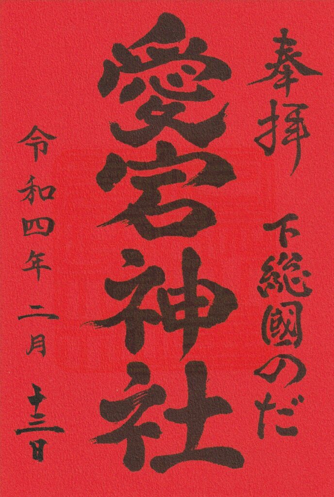 2022年2月中旬には、紙面中央の神社名が冬色で記され、社名印と社紋印が押されたもの、黒文字に花印が押されたものが授与されていました。