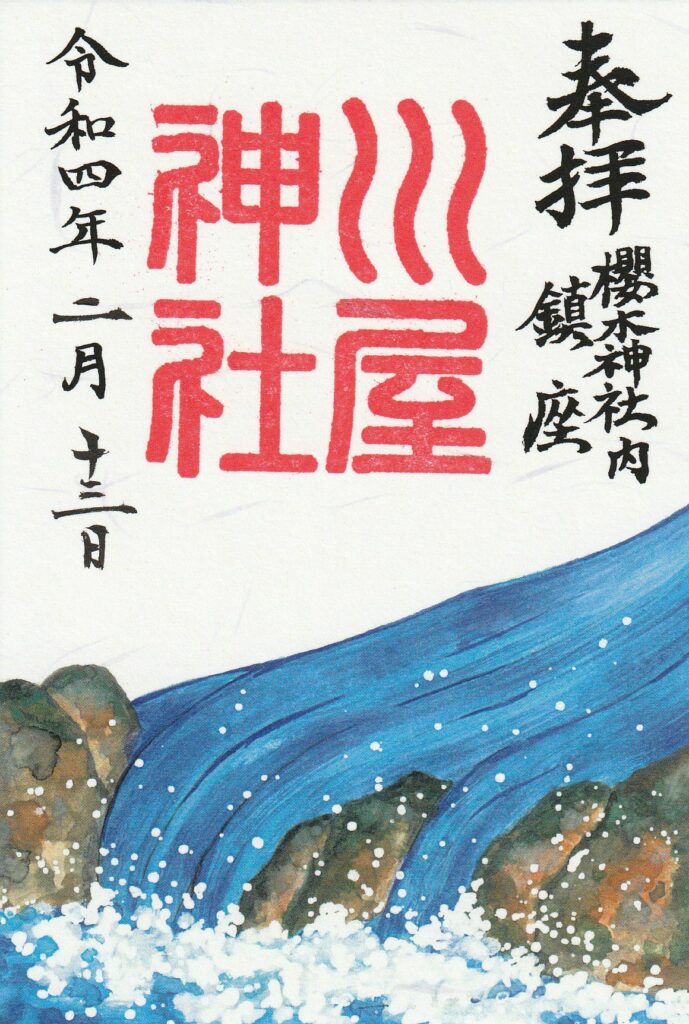 櫻木神社の文字を中心とした御朱印の他にも、兼務社の愛宕神社、境内社の川屋神社の御朱印も頂くことができます。川屋神社は櫻木神社のトイレの中に社殿を構えていることに驚かされます。