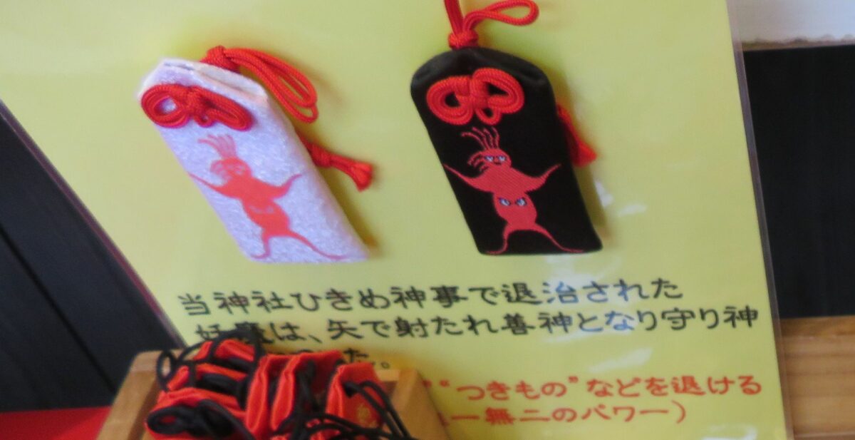 「蟇目神事御武射祭」によって悪神から善神に転化する妖魔が描かれるお守り