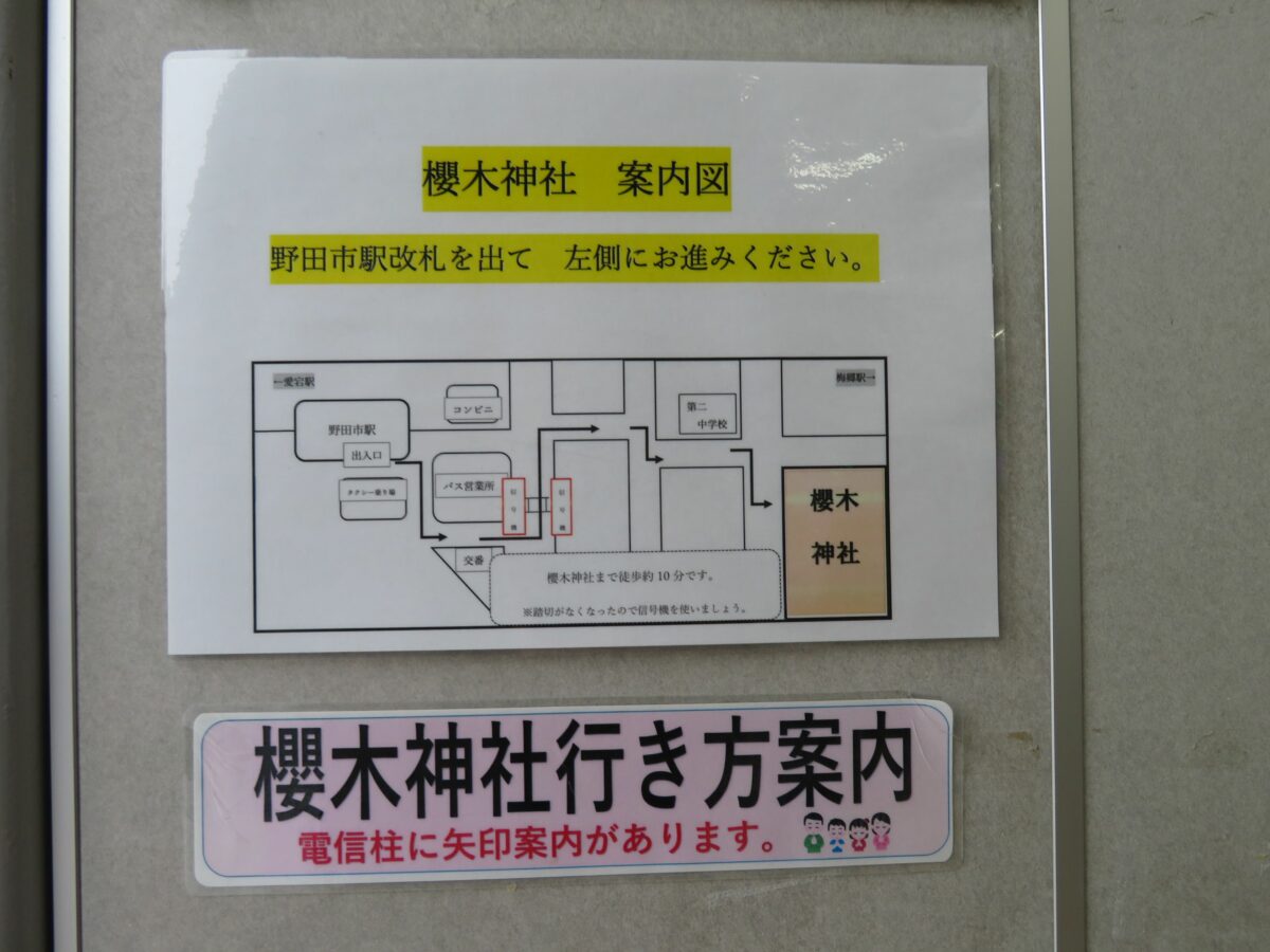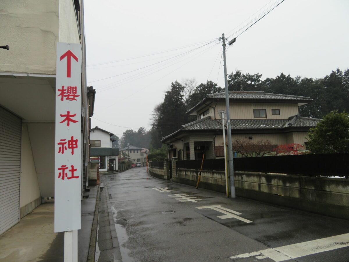 櫻木神社は、東武アーバンパークラインの野田市駅の南東約700メートルのところに社殿を構えています。千葉県野田市では室町時代から醤油作りが始められ、現在では日本でマーケットシェア・トップのキッコーマン社が操業を続けています。野田市駅は南北から醤油工場に挟まれていますが、櫻木神社への道案内の掲示も行われています。