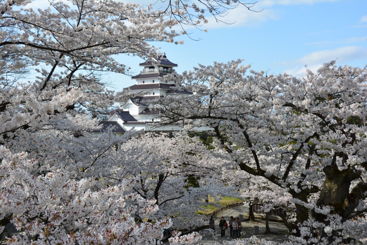 「鶴ヶ城さくらまつり」戊辰戦争で激しい砲撃を受けた天守の全周を薄紅色に彩る桜