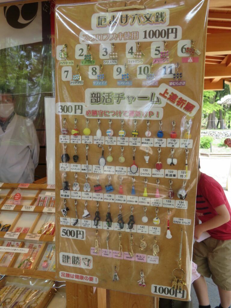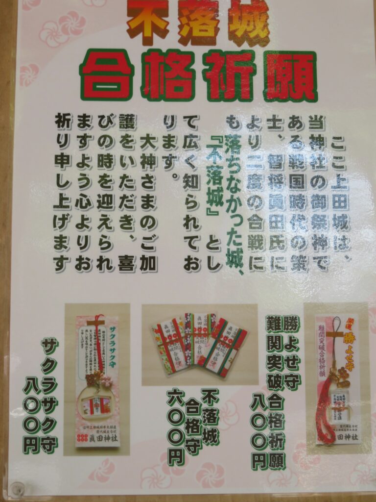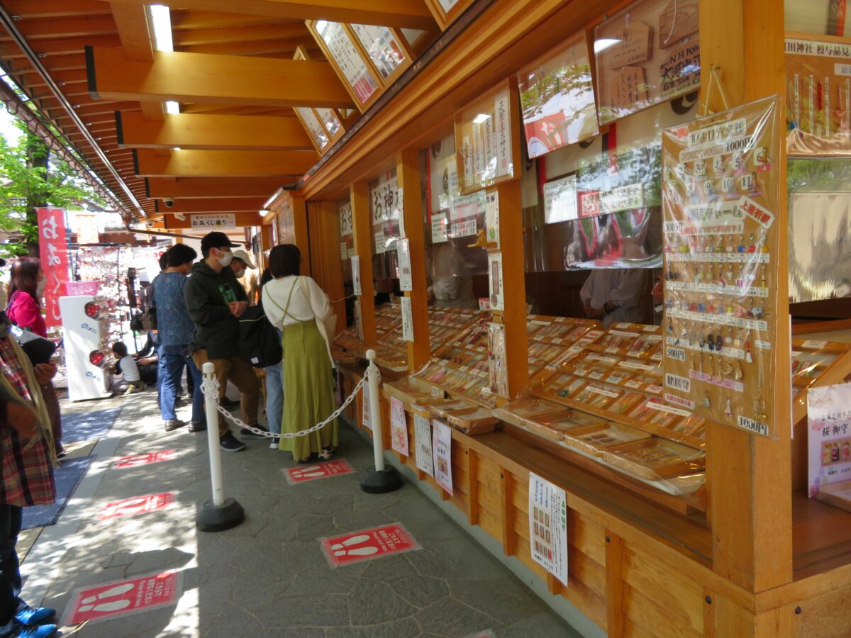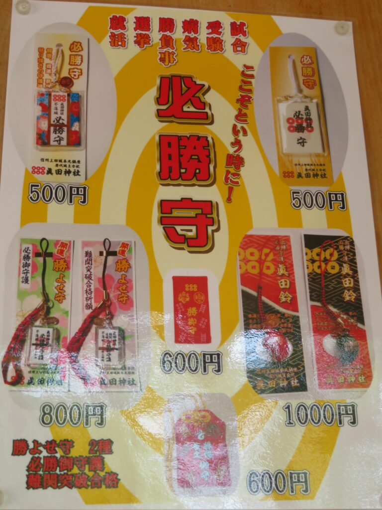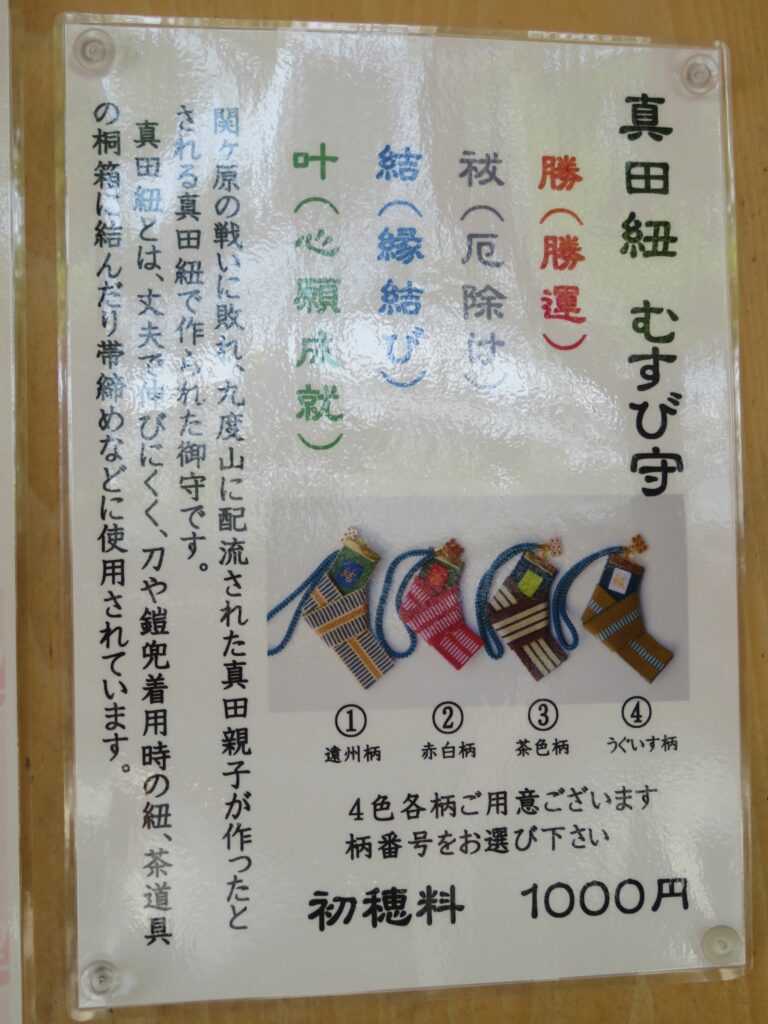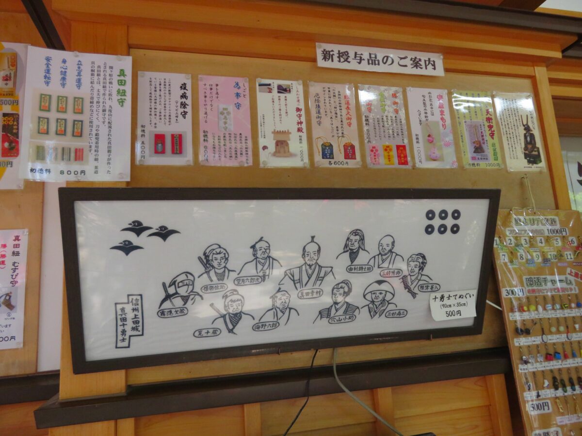 御朱印受付に並ぶ授与所には、長い窓口に豊富な種類の授与品が並んでいます。お守りや絵馬には、真田家の武運にあやかったパワーが漲っているようです。