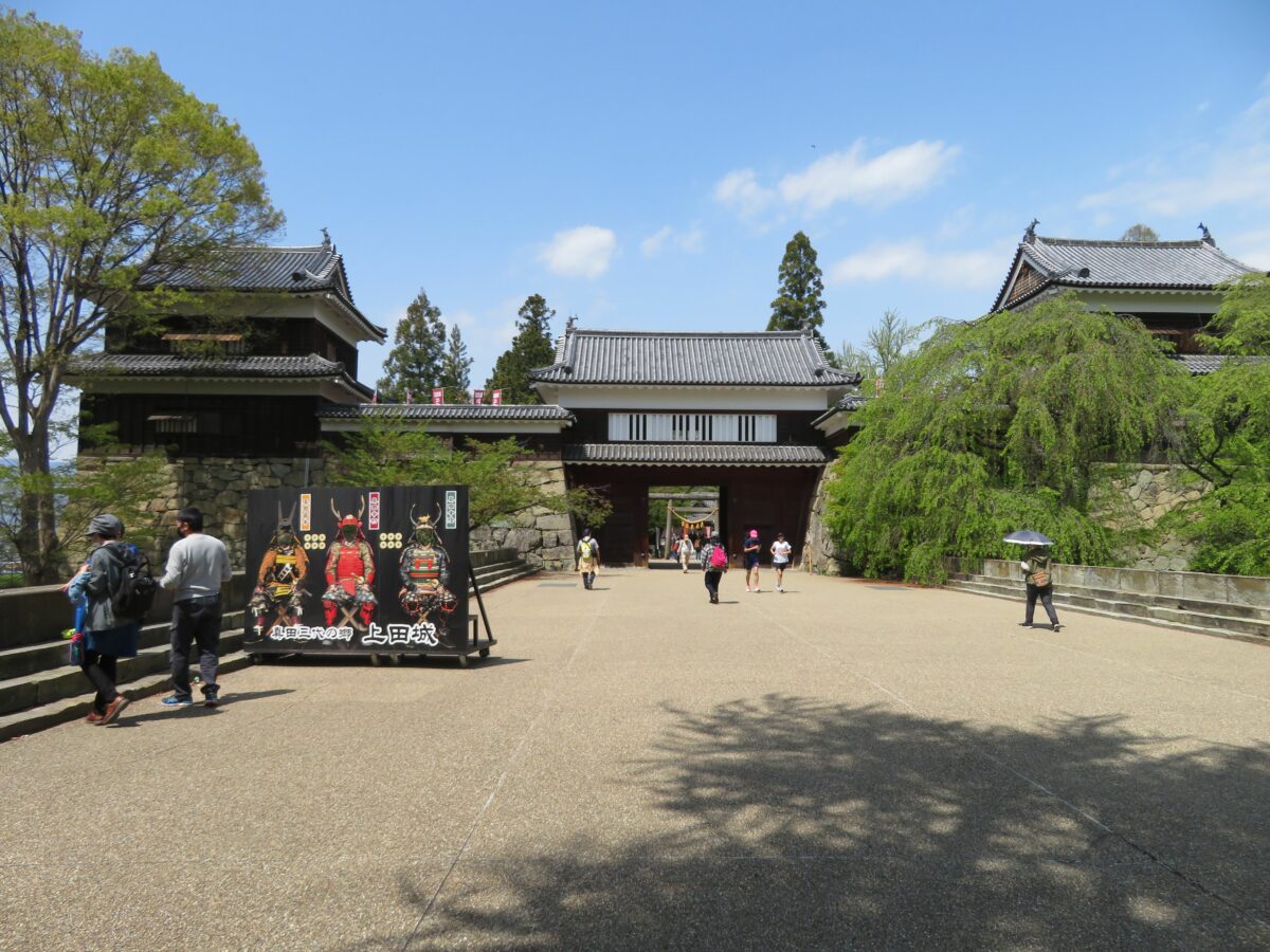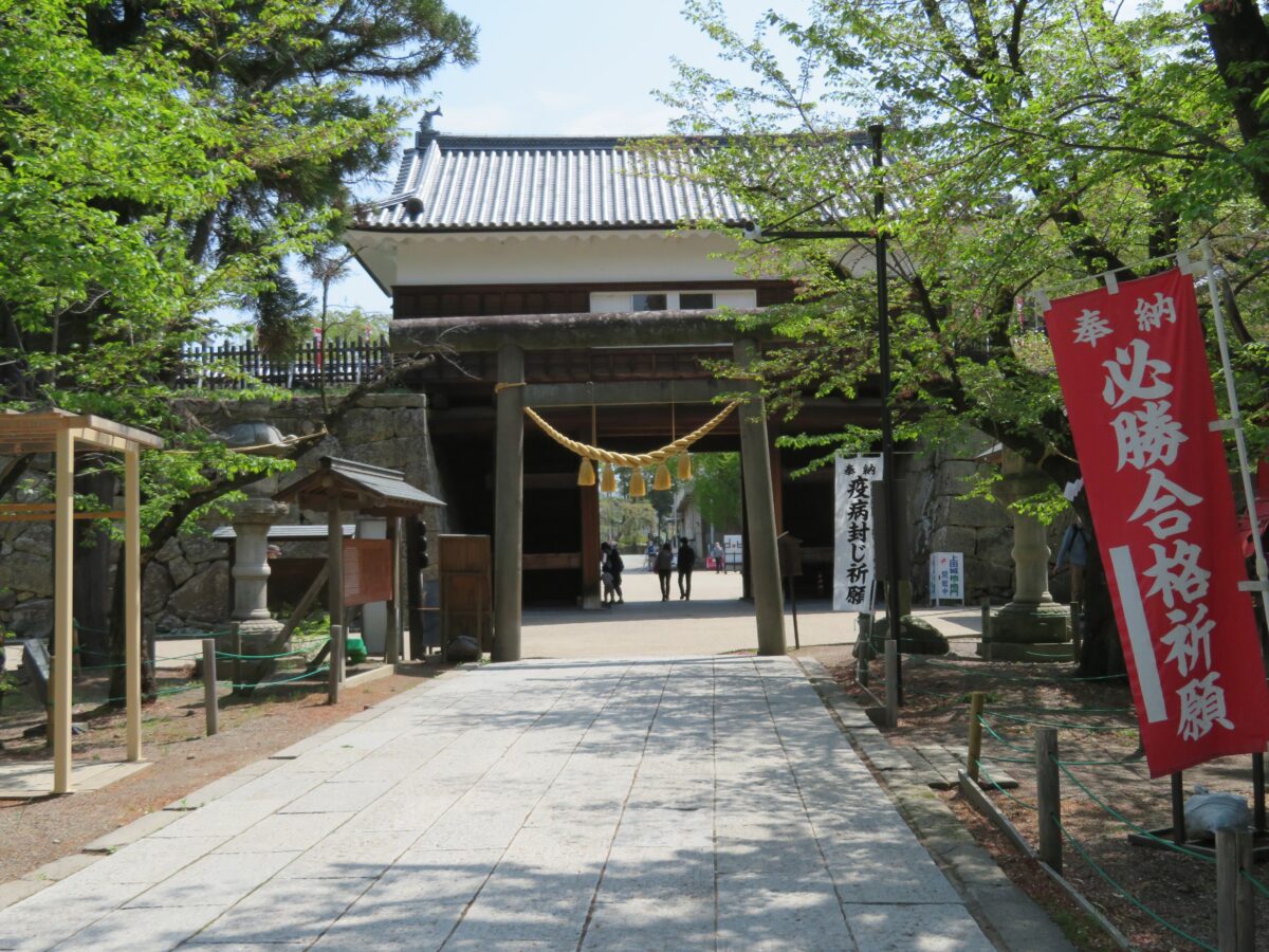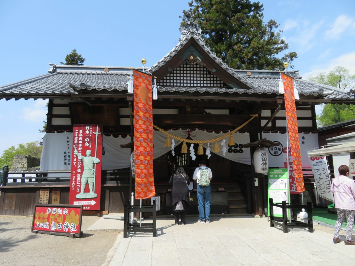 神社の玄関の役割を担う鳥居の東には上田城の東虎口櫓門が残されています。2016年のNHK大河ドラマ『真田丸』で、関ケ原に向かう徳川秀忠の大軍を迎え撃つ真田昌幸公、信繁公の親子の姿が目に浮かんでくるようです。