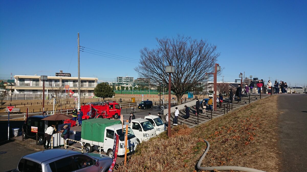 日野市の落ち着いた雰囲気の中、新型コロナ禍ではありましたが、どんど焼きを楽しむことが出来ました。会場の後ろでは、北海道スイーツの販売も行われており、長蛇の列が出来ておりました。ライターも最初並んでいたのですが、どんど焼きがはじまってしまいそうだったので離脱してしまい、終わって戻ってくる頃には写真のような状況でした笑