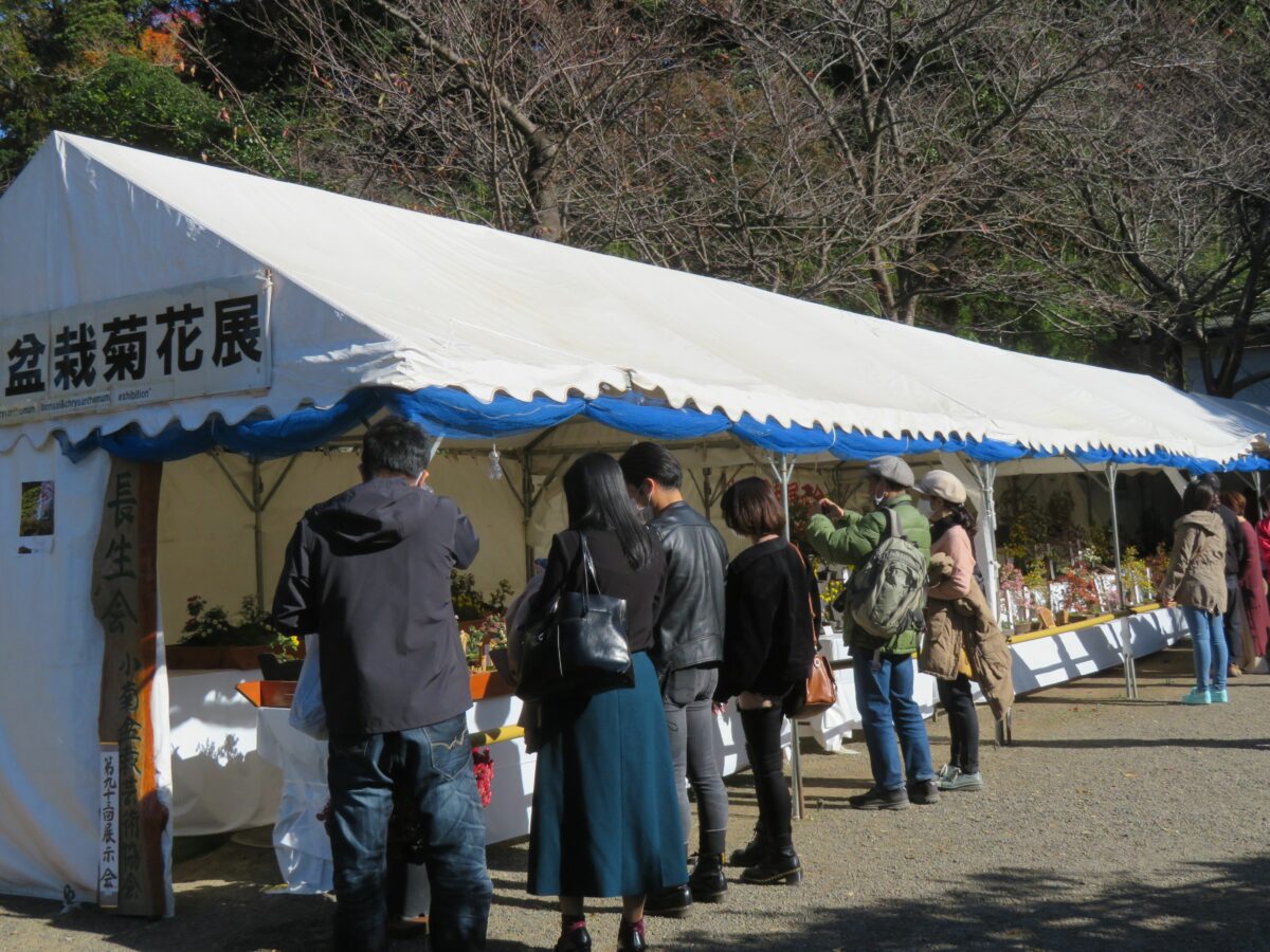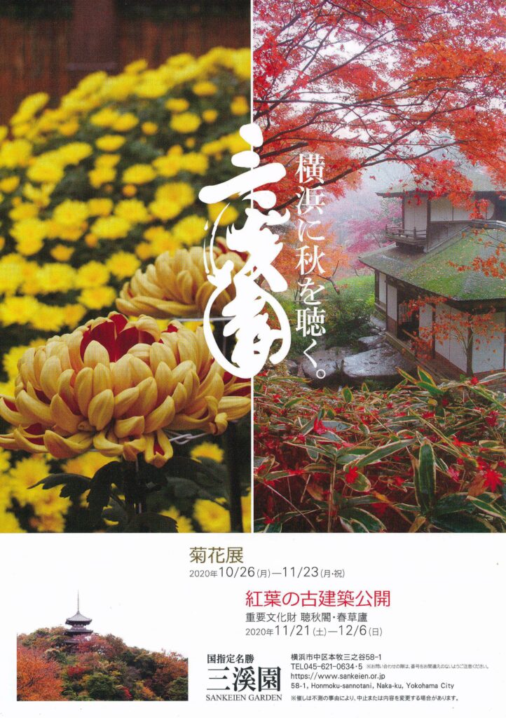 三溪園では紅葉の時期に合わせて普段は公開していない古建築の公開が行われますが、正門近くの広場では菊花展も開催され視線の異なる秋を感じることができます。2020年の菊花展は、10月26日~11月23日に行われました。