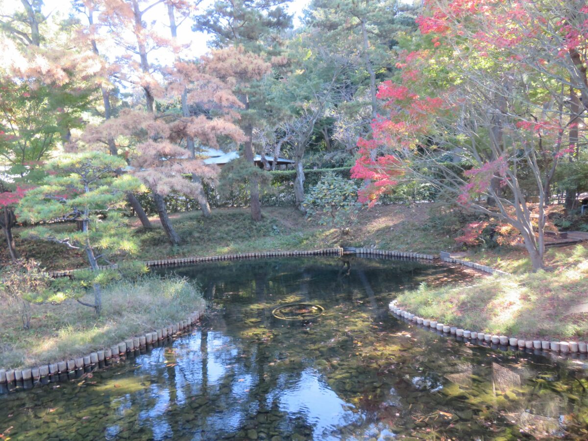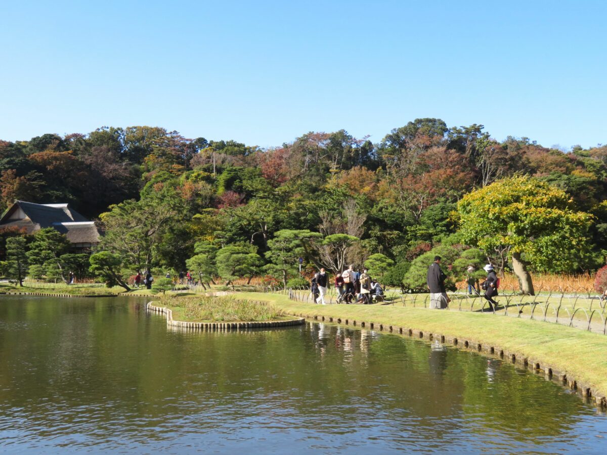 正門から園内に入ると穏やかな水面を湛える大池が広がります。