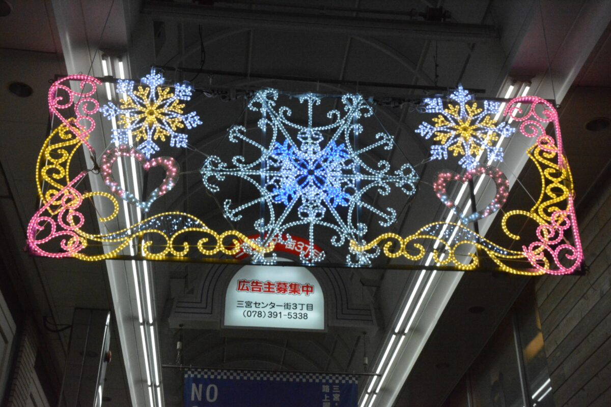 三宮センター街の頭上で輝くイルミネーション