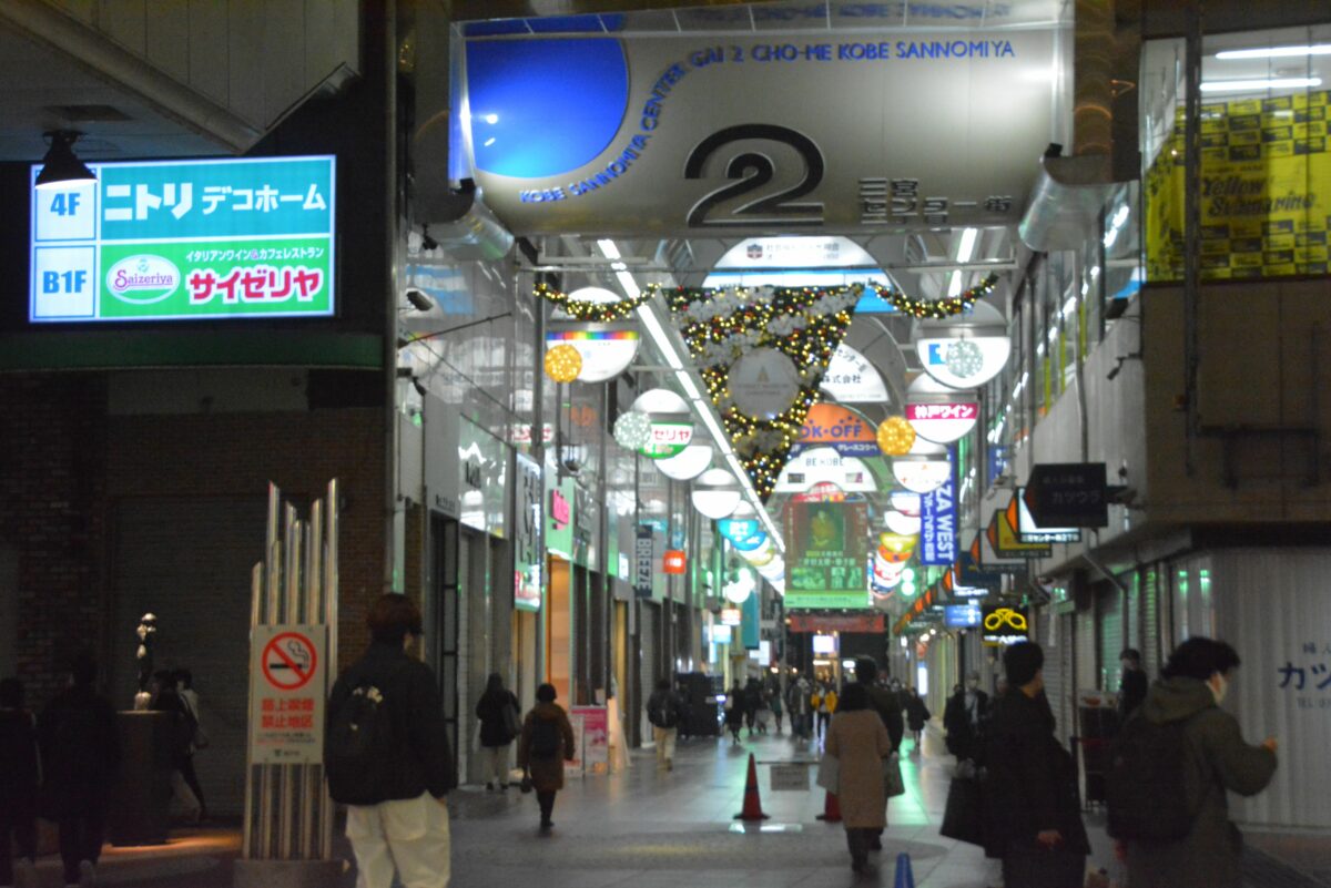 フラワーロードに繋がる三宮駅前のコリドー