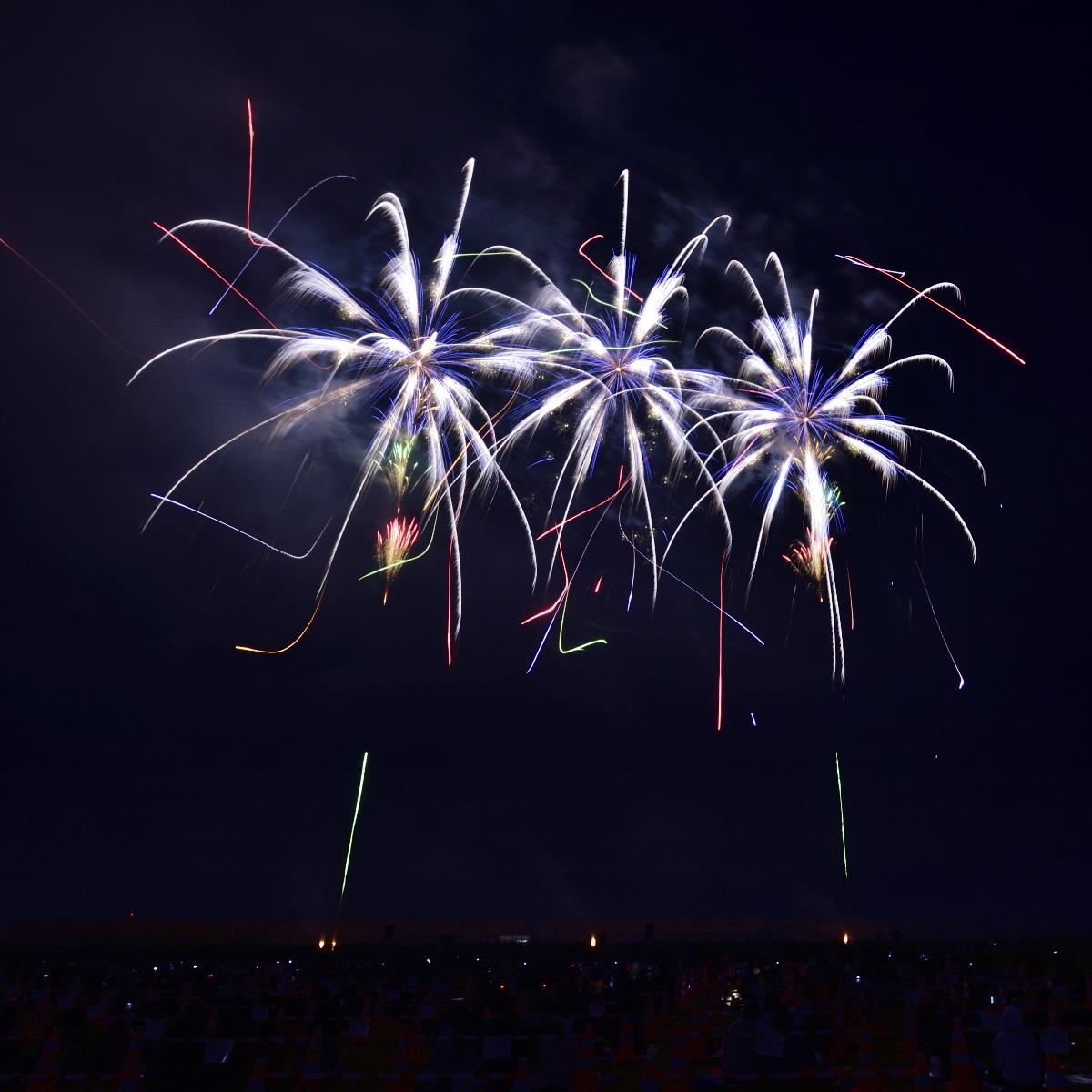 とにかく美しい!!!!!透き通るような純白の筋が描く楽園の中を、色とりどりの妖精たちが夜空を元気に飛び回ります。僅か1分の時間でしたが、そこには楽園に存在する永遠の時間が流れていました。