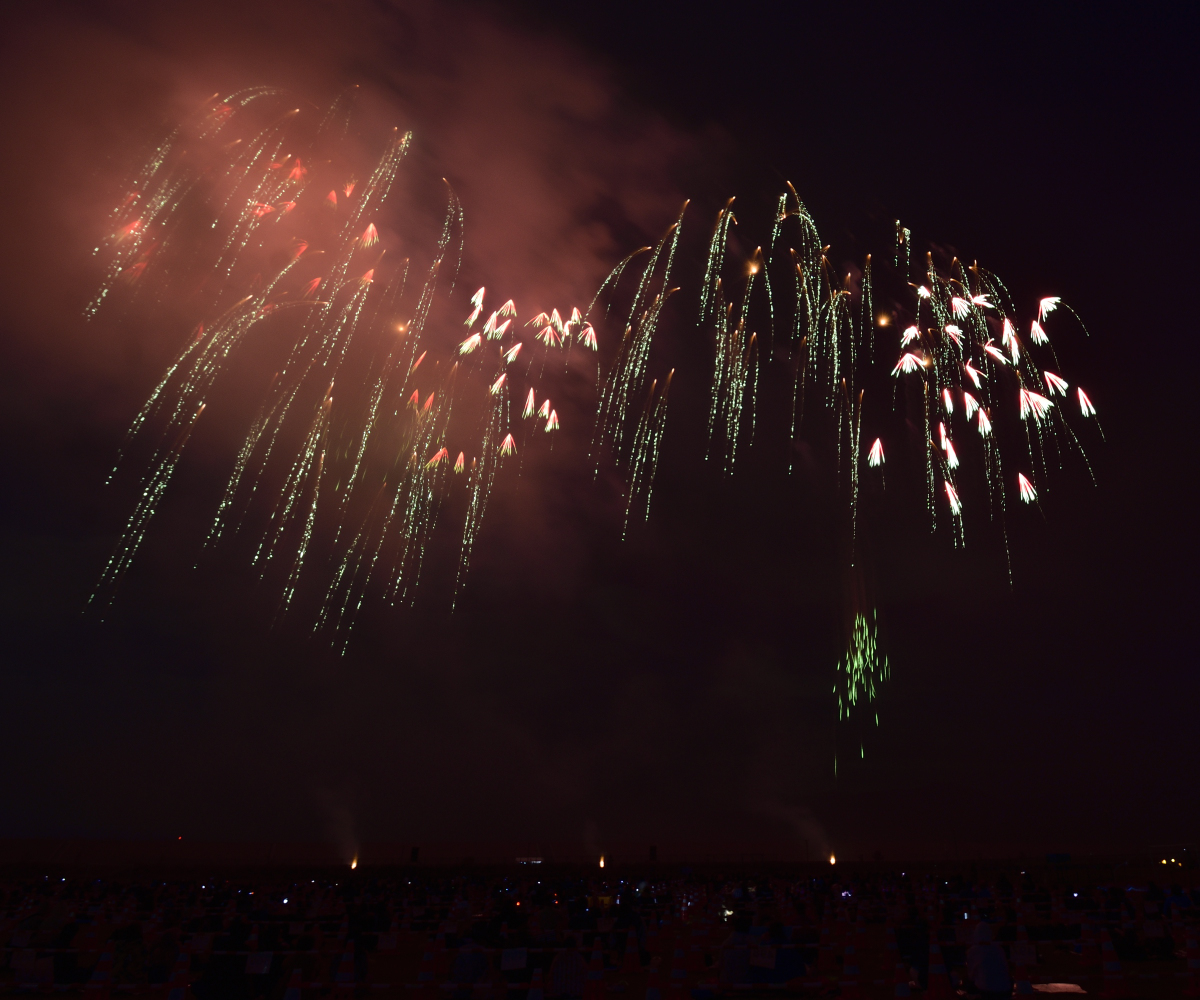 昇る時に、枝分かれしながら色を出す「分砲(ぶんぽう)」がとても凝っていて、咲いた花火とのバランスが秀逸。造形が美しく終盤には、小花が一斉に咲く「千輪(せんりん)」や地面すれすれまで下がる花火を用いて、一面の花畑を表現したセンスの良さに感激しました。