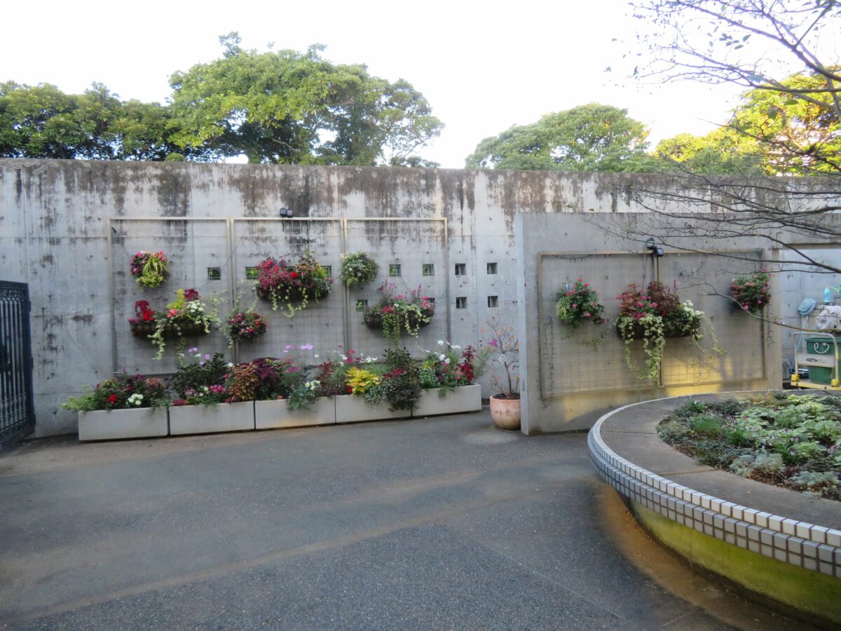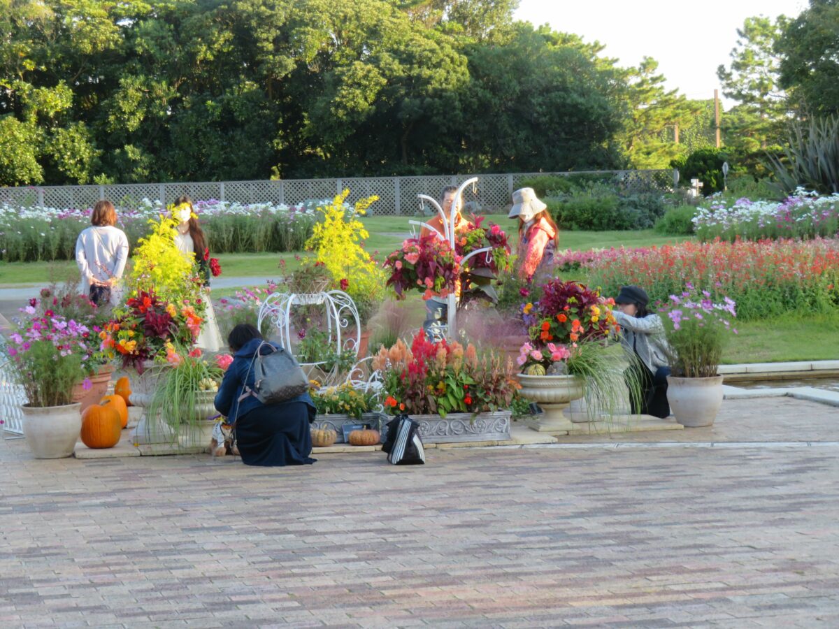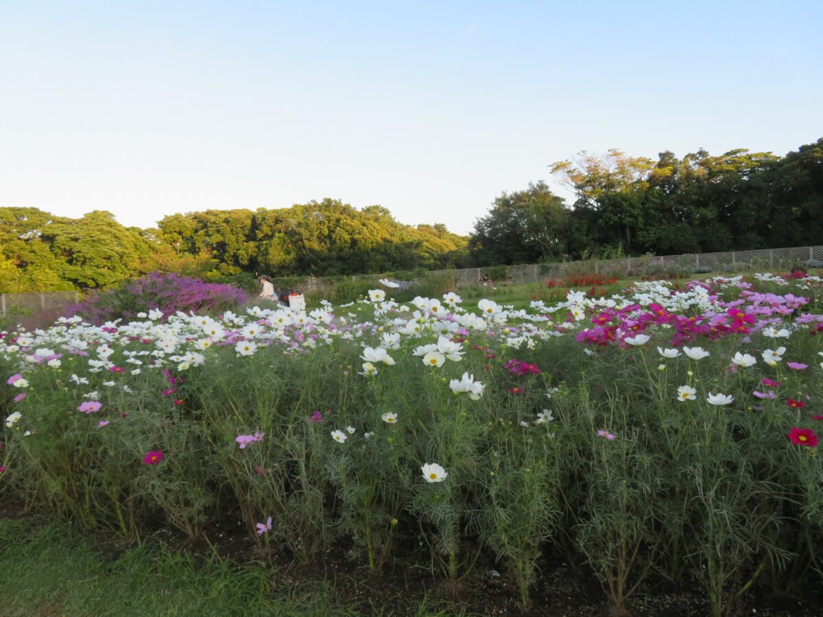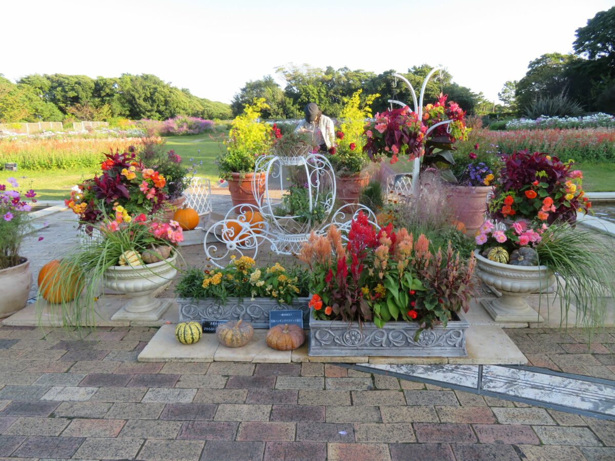 三陽メディアフラワーミュージアムの敷地内に入ると広々とした前庭です。ハロウィンの時期にはコスモスを中心として秋の彩りで包まれます。