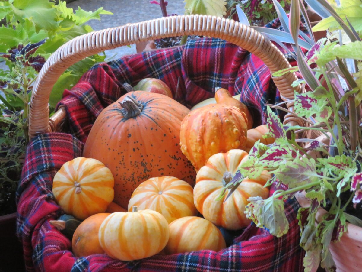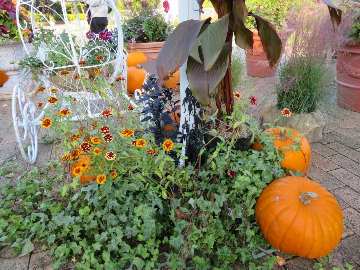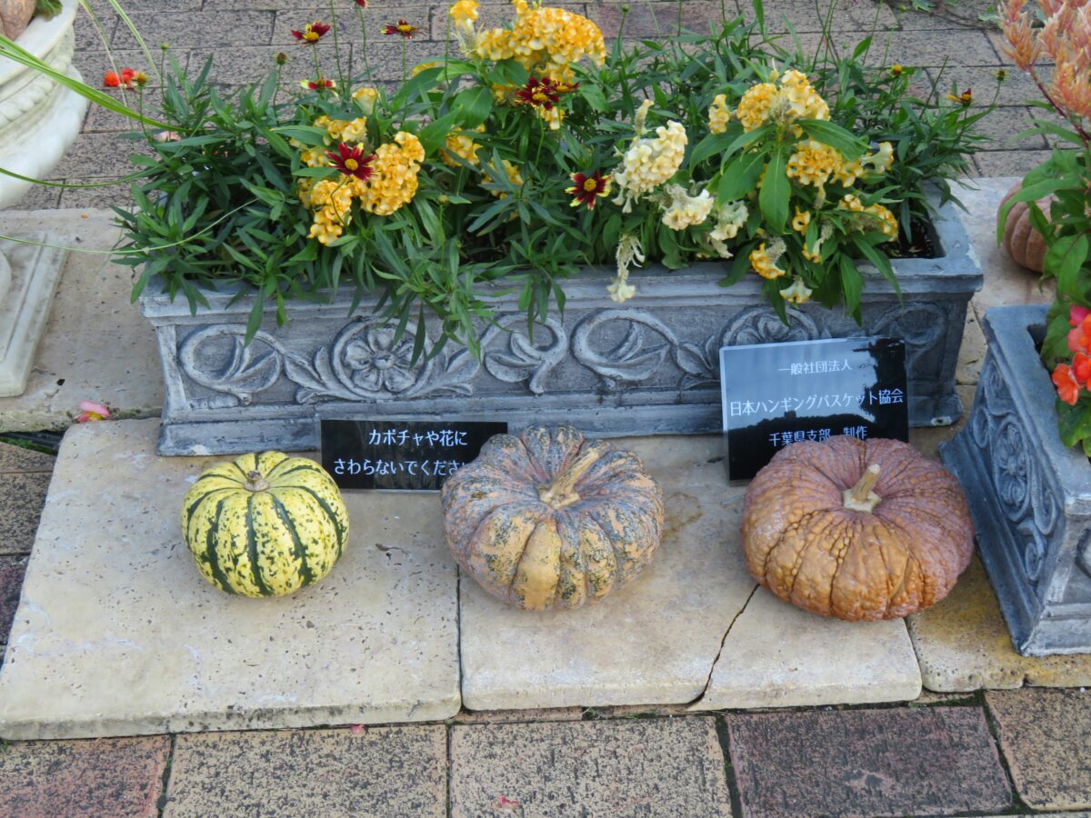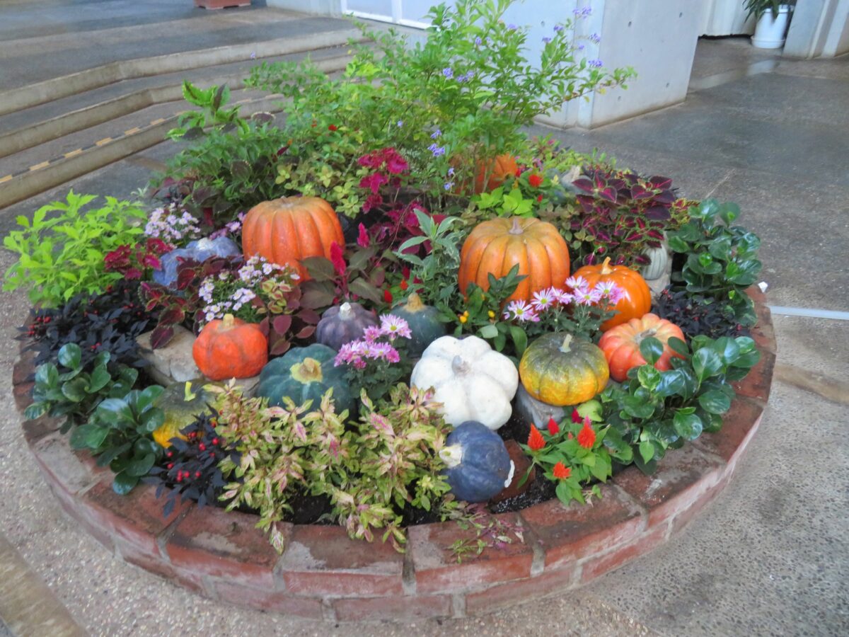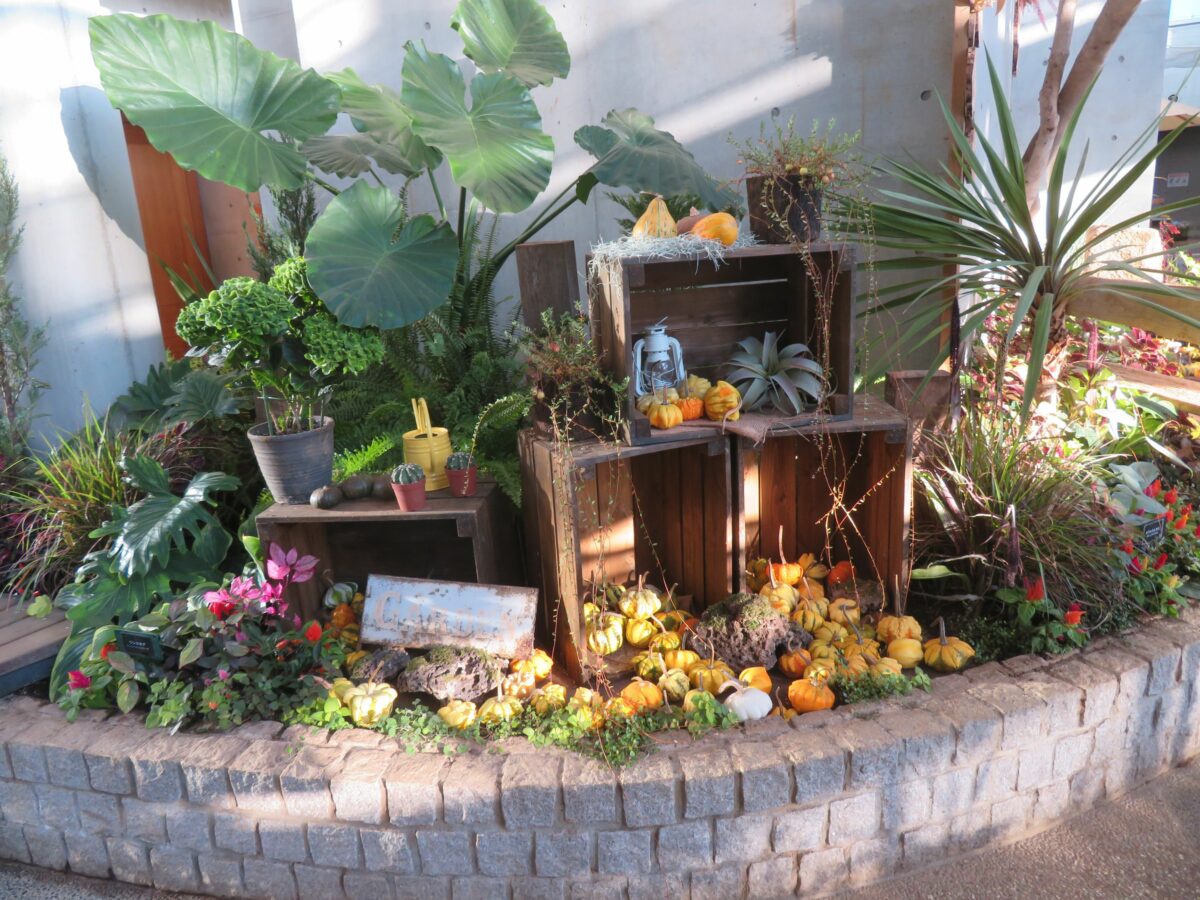 展示棟奥の円形の花壇に並ぶカボチャは、まるで花のようです。