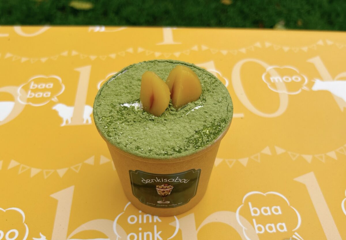 食後は、甘味処デンキ茶房の「抹茶パフェ」をいただきます。