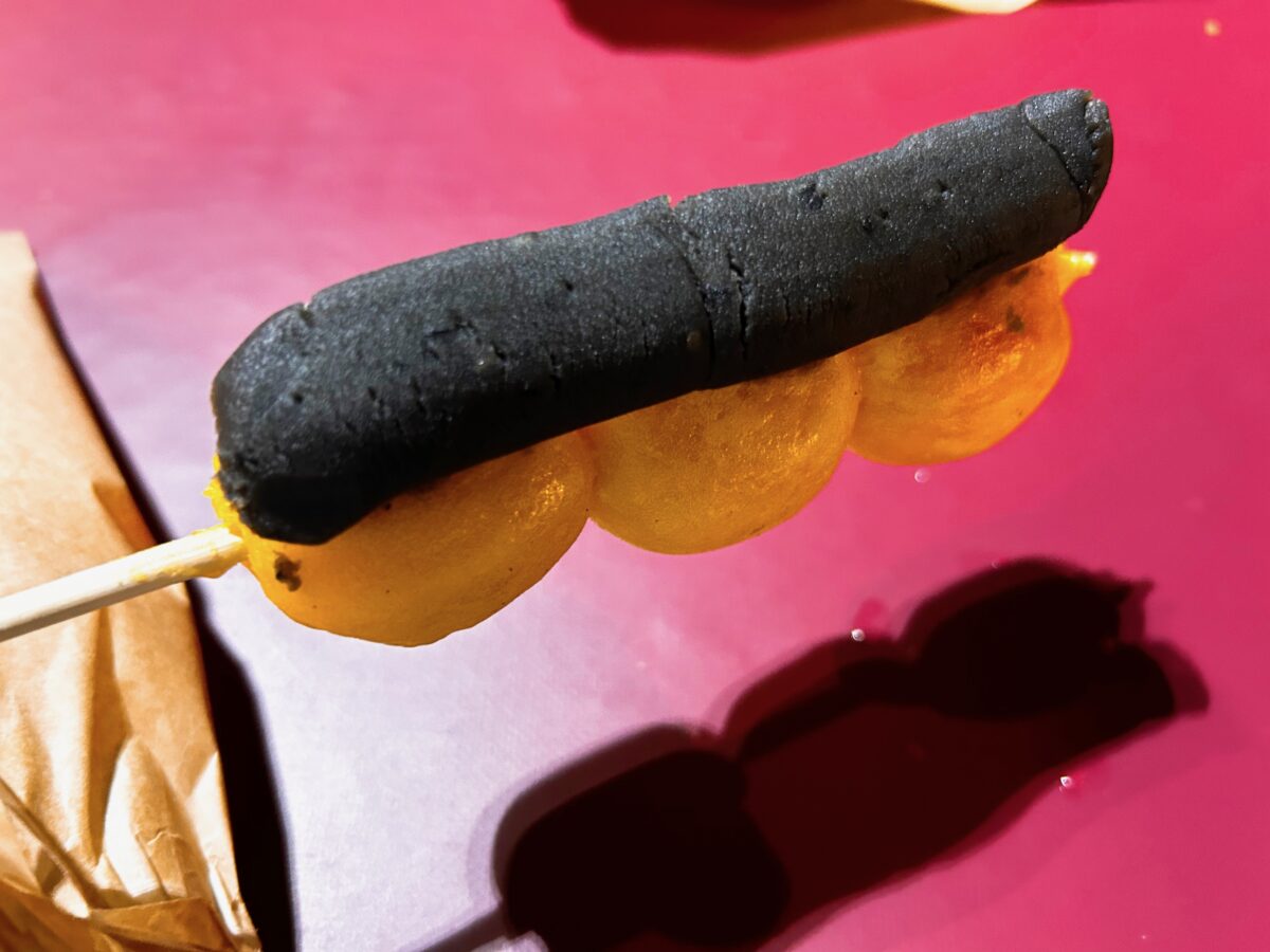 今回は、餅をかぼちゃ味、餡を胡麻味にしてみました。