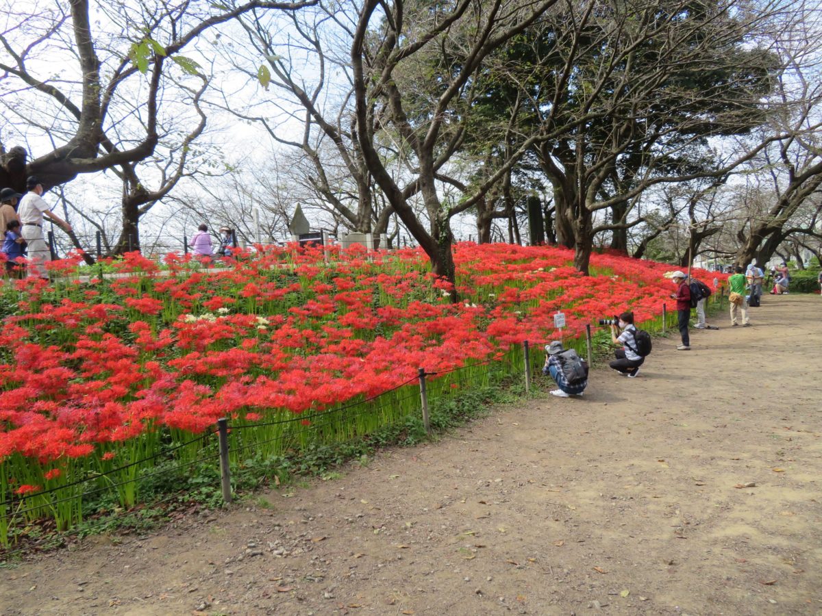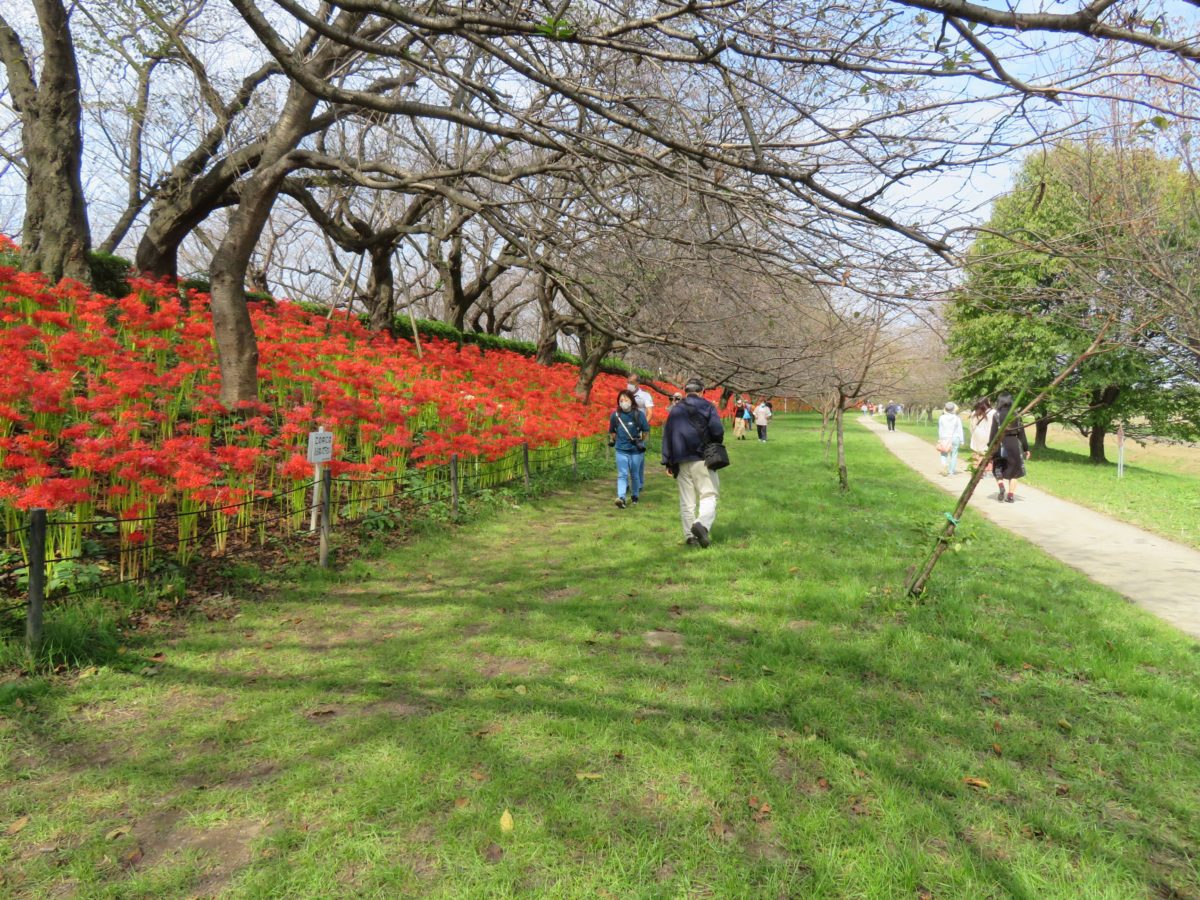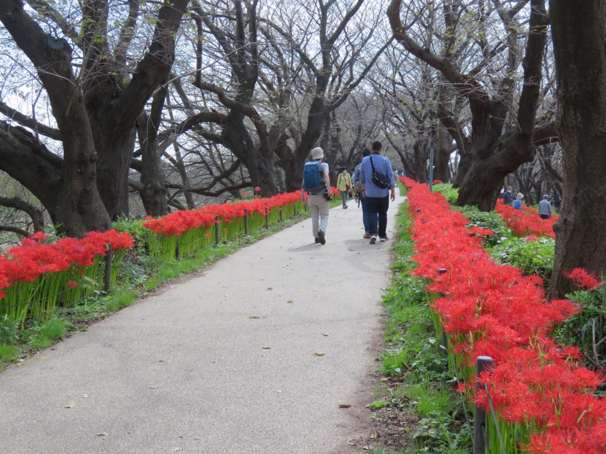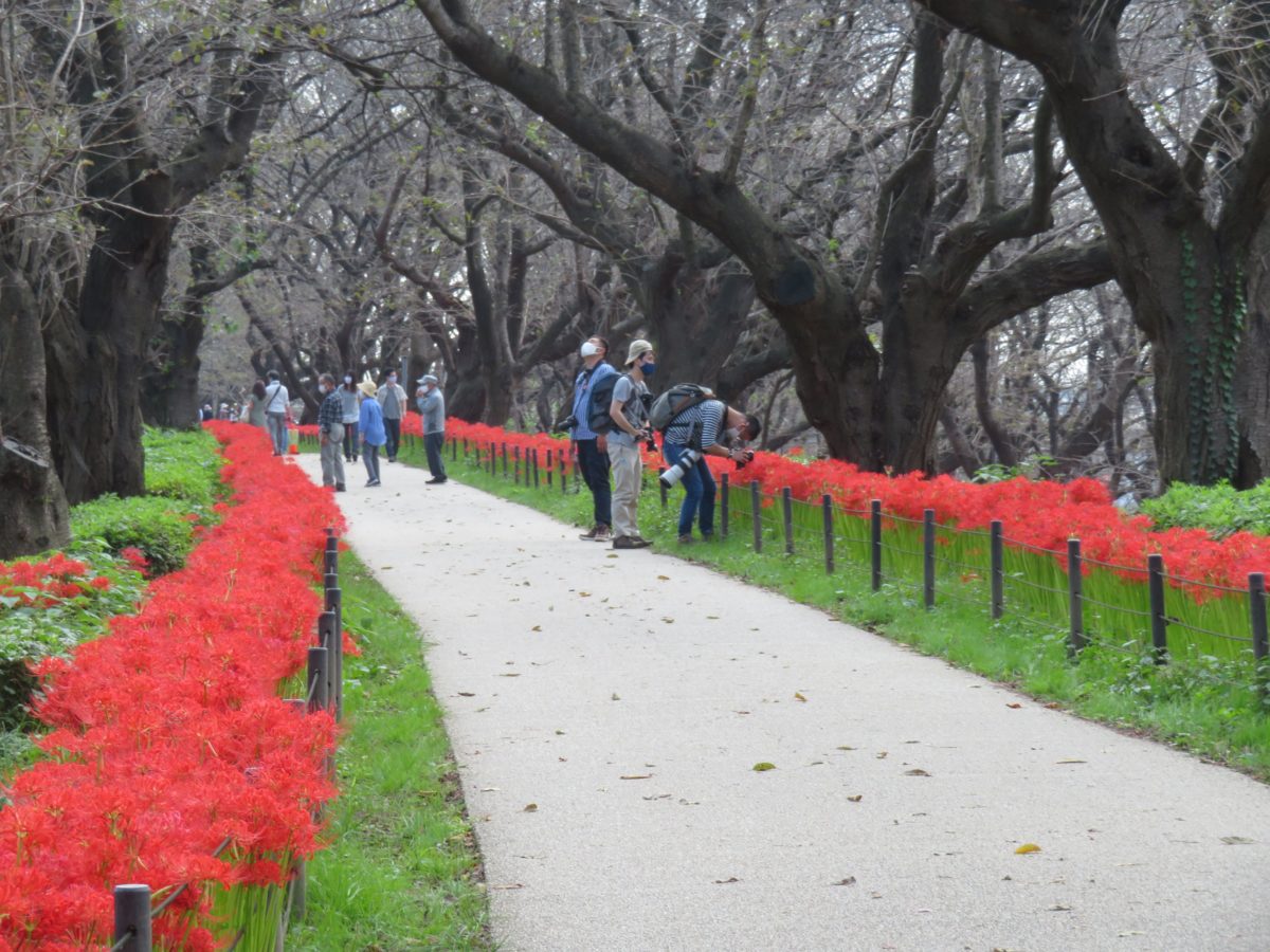 権現堂公園には2000年から市民ボランティアが、曼殊沙華を育てるようになりました。土手道の左右は、端から端まで曼殊沙華の花のラインが繋がります。足元に咲く曼殊沙華の花には愛らしさが満ち溢れます。