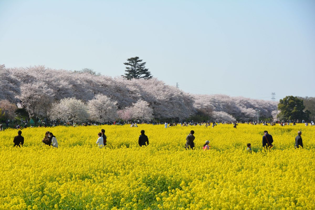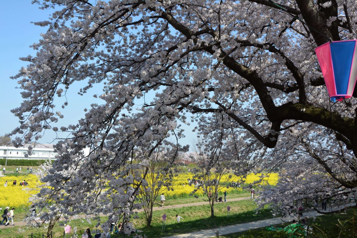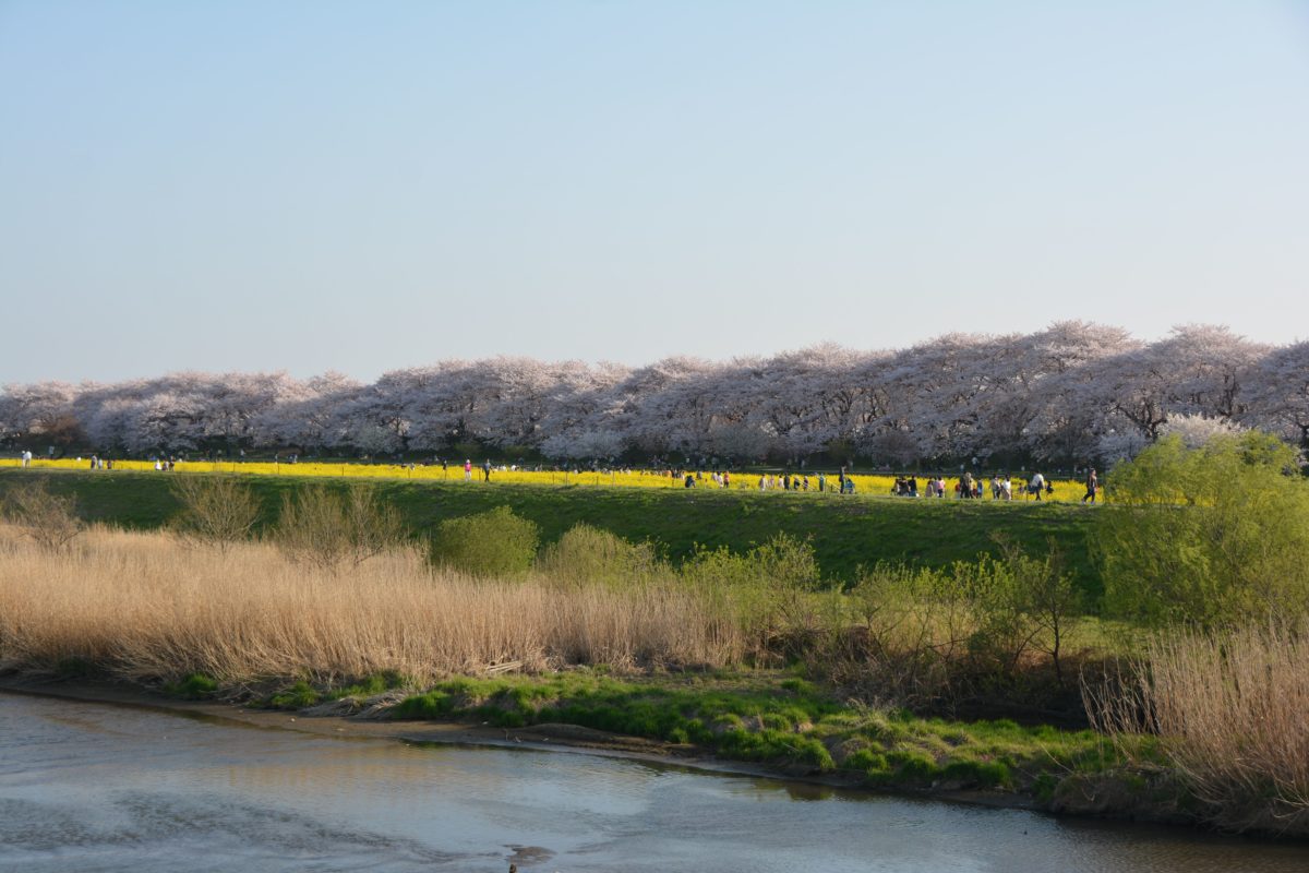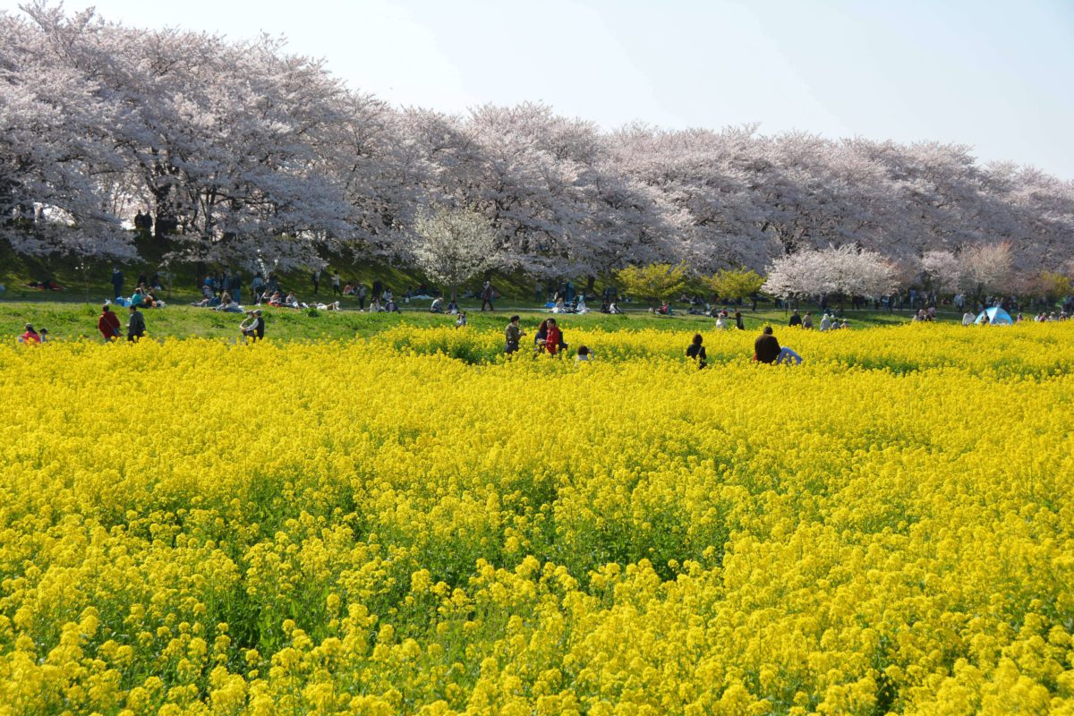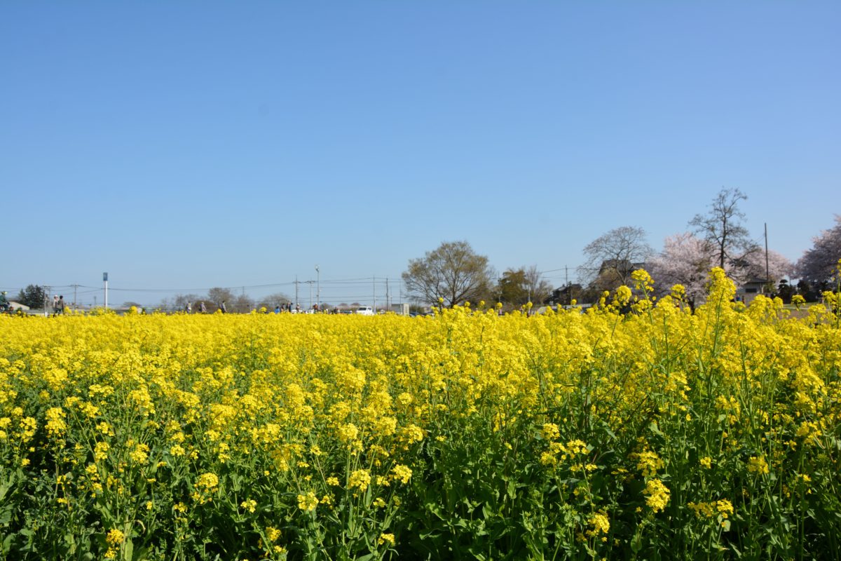 「幸手桜まつり」の時期に同時に花を咲かせる桜と菜の花
