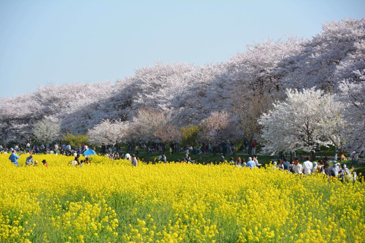 薄紅の桜の色に菜の花の黄色が絶妙のコントラストを見せる幸手の権現堂