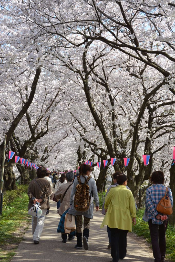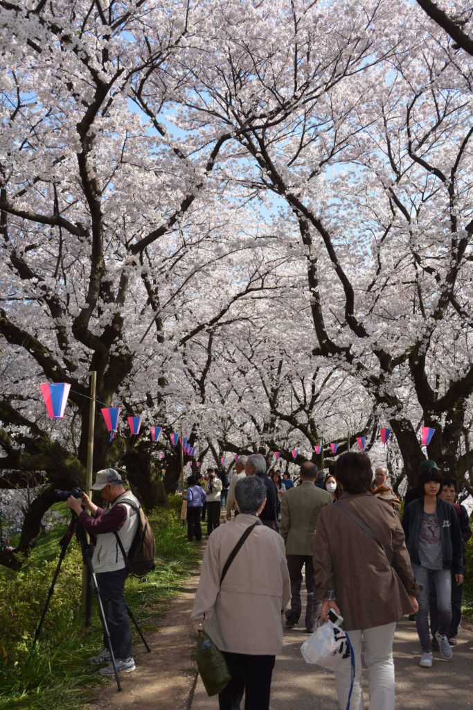 水害防止のために築いた堤防に植樹された桜が作る桜のトンネル