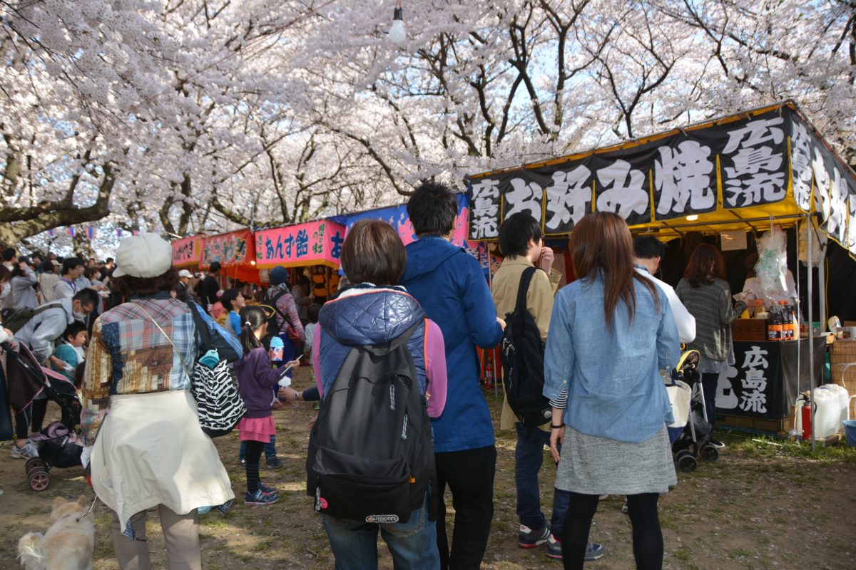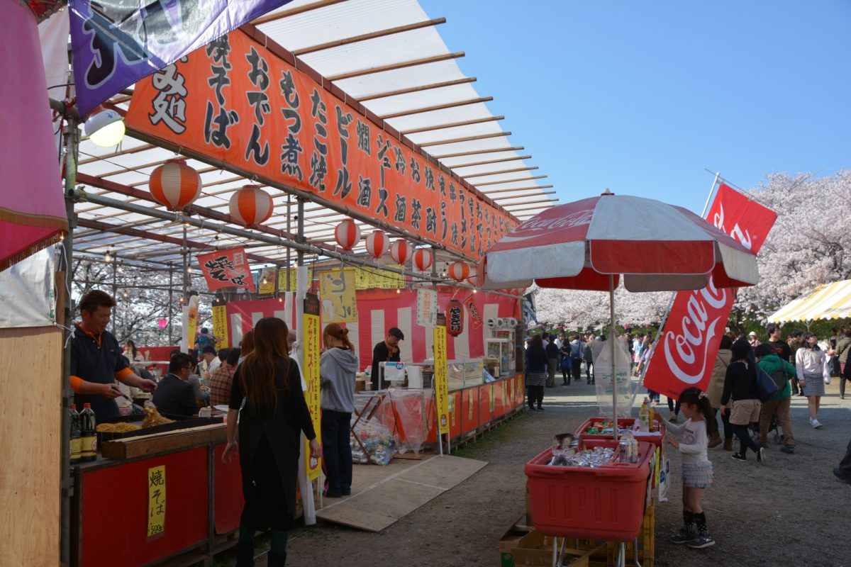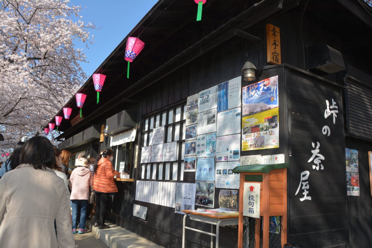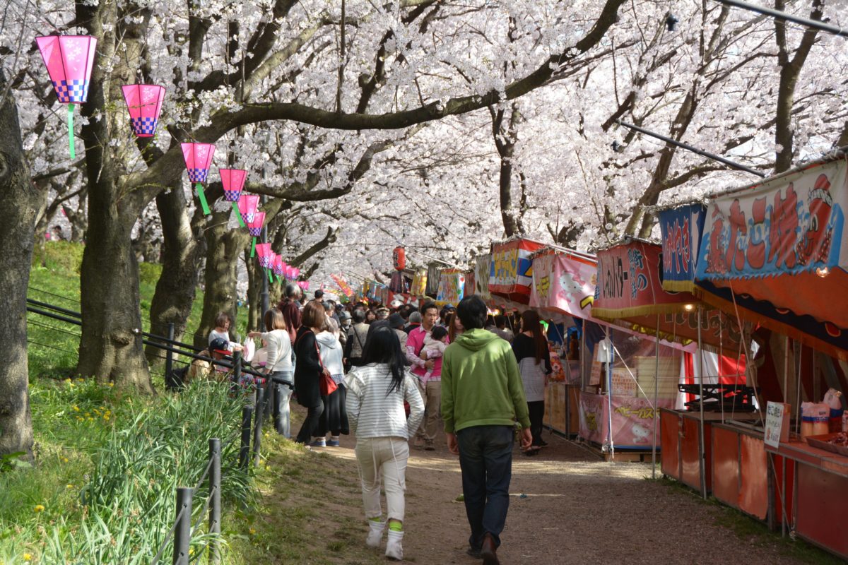 「幸手桜まつり」の期間中には、桜堤や広場には数多くの露店が出店します。常設売店の峠の茶屋では、桜を用いた商品が並びます。堤の下では左右に桜の花と菜の花を見ながら、お弁当を広げることができます。