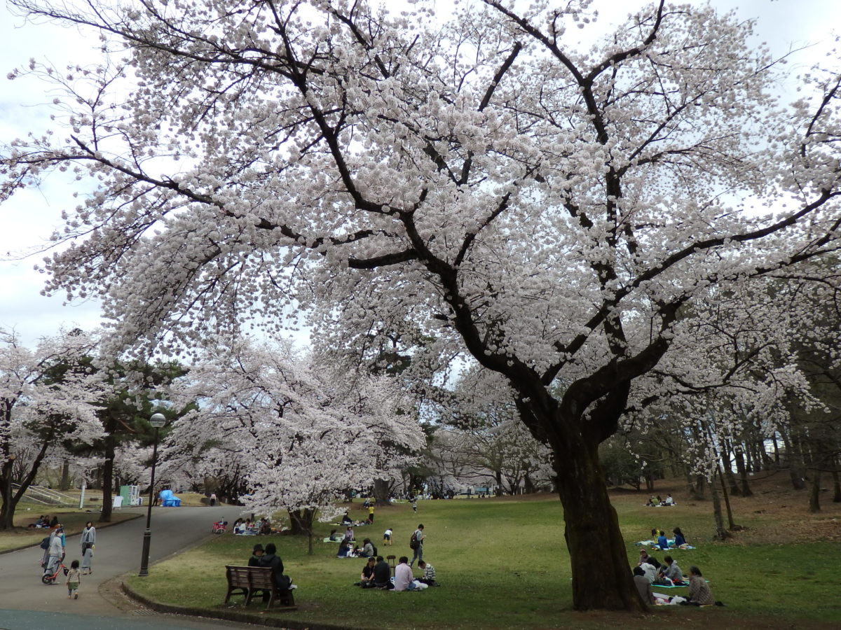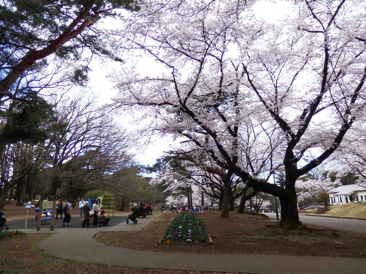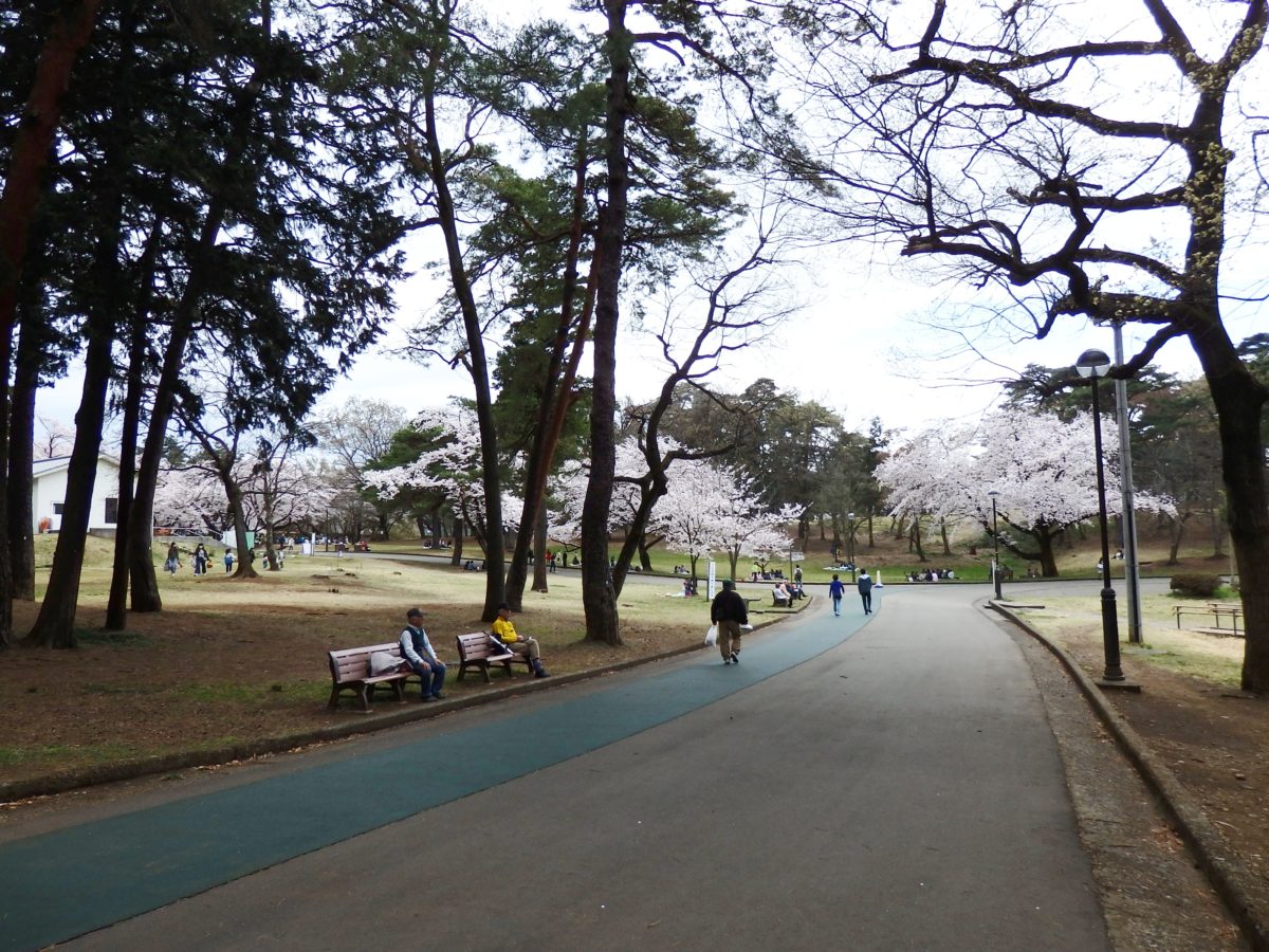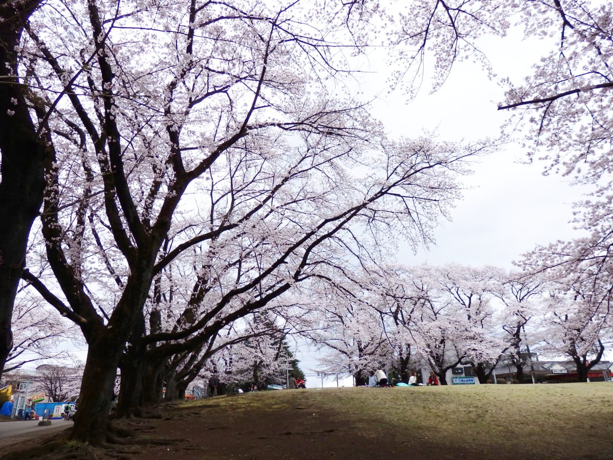 ジョギング・ウォーキングコースに沿って芝生広場が整備されています。芝生の上にシートを敷いて、お弁当を広げることができます。桜まつりの当日には正門付近に露店が出店されますから、現地調達も可能です。