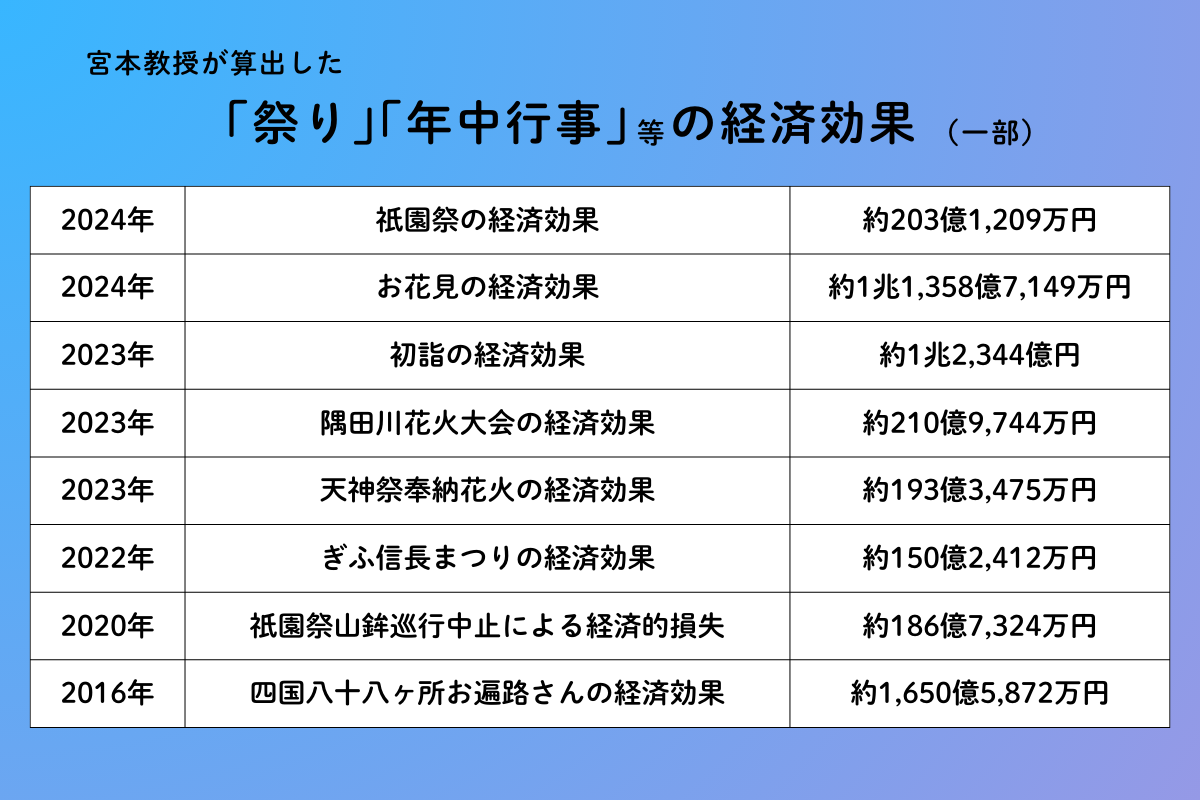 ――ちょうど例にも挙げていただきましたが、これまで祇園祭以外にも「なにわ淀川花火大会」「天神祭奉納花火」といったお祭りや初詣、お花見といった年中行事の経済効果も発表されておられます。伝統的行事などの経済効果を調べるきっかけはあったのでしょうか。