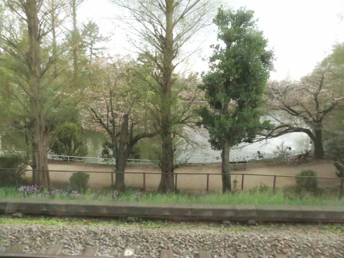 西武新宿線の武蔵関駅~東伏見駅の区間では、南側の車窓を桜の花が流れていきます。