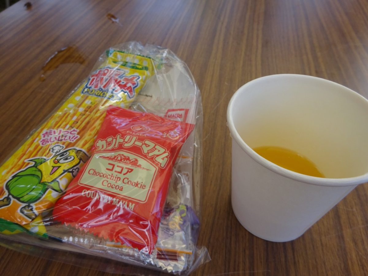 途中、休憩処があり、バナナとお菓子を支給されました。
