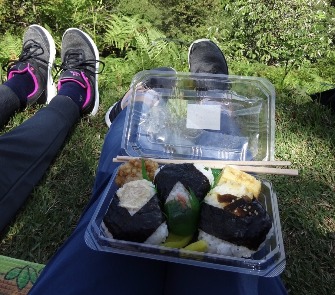 というなんとも言えない気持ちになりながらも、絶景を前に昼食のおにぎりを食べました。