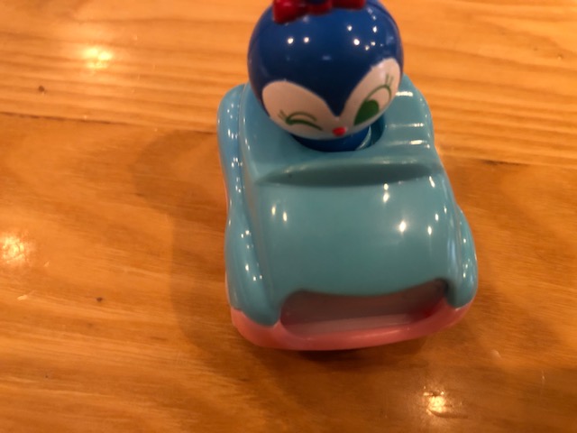 しまじろうや鬼滅の刃、ドラえもんなどと見ていくと中には電柱や床屋のバーバーポール、お通し、などというものも。一緒に行った友人はキャンプセットのポーチと昭和の包装紙柄のポーチ、そしてたべっこ動物と言うマニアックな組み合わせ。弱気な私はアンパンマンのコキンちゃんが乗った車をゲット。2歳の甥っ子にプレゼントしたいところ。