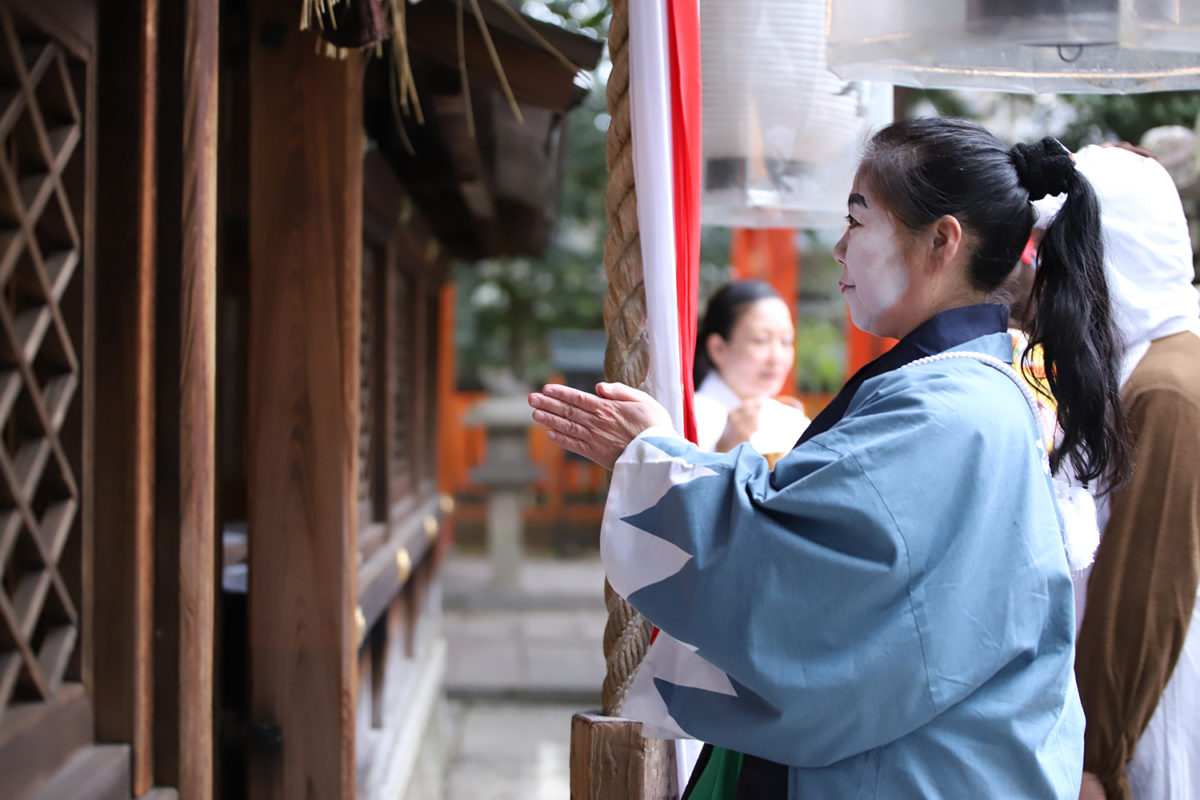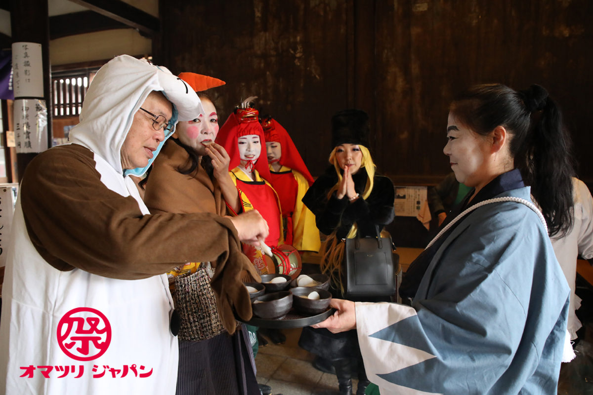 前日の追儺式により改心した鬼たちが袴を着て正装して歩いていました。