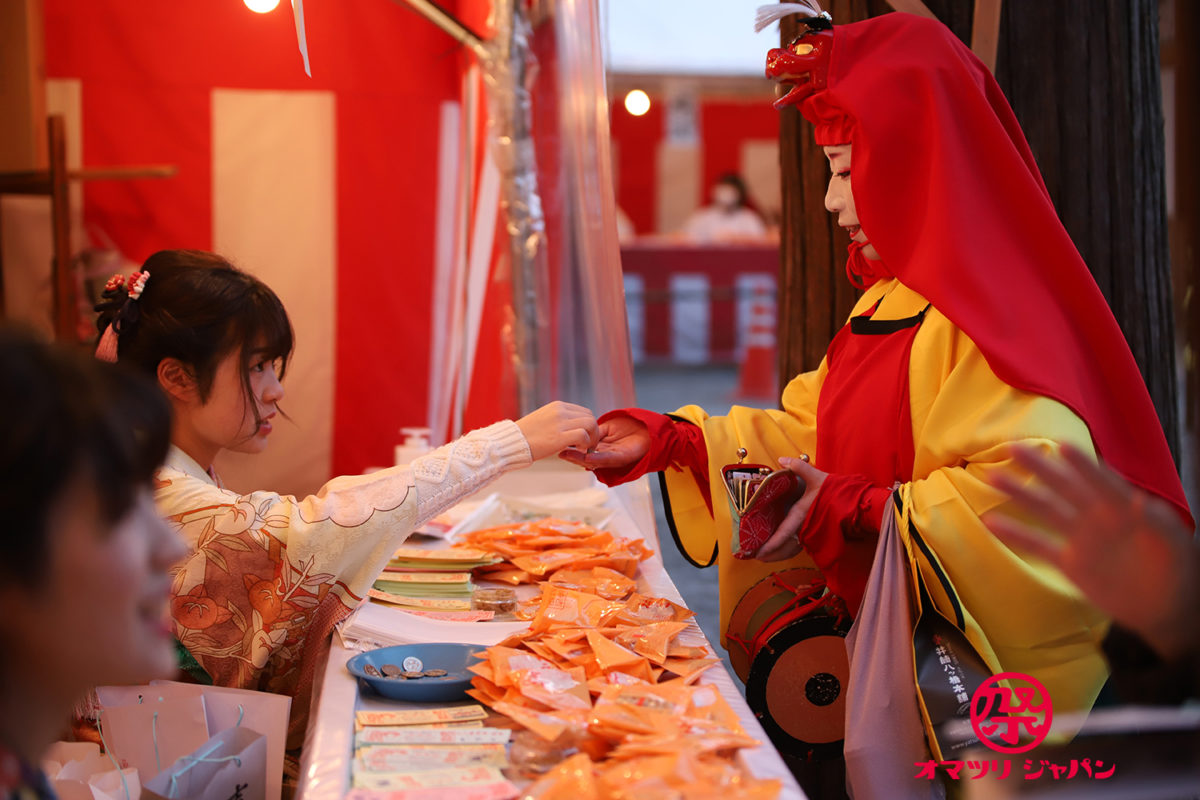 葵太夫は「抽選券付き厄除け福豆」をゲット。