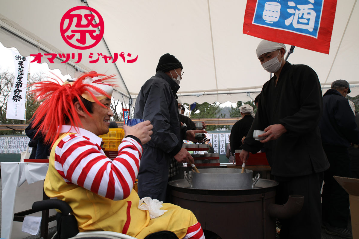 境内で炊き出ししている大きな振舞い大根やお酒をいただきます。