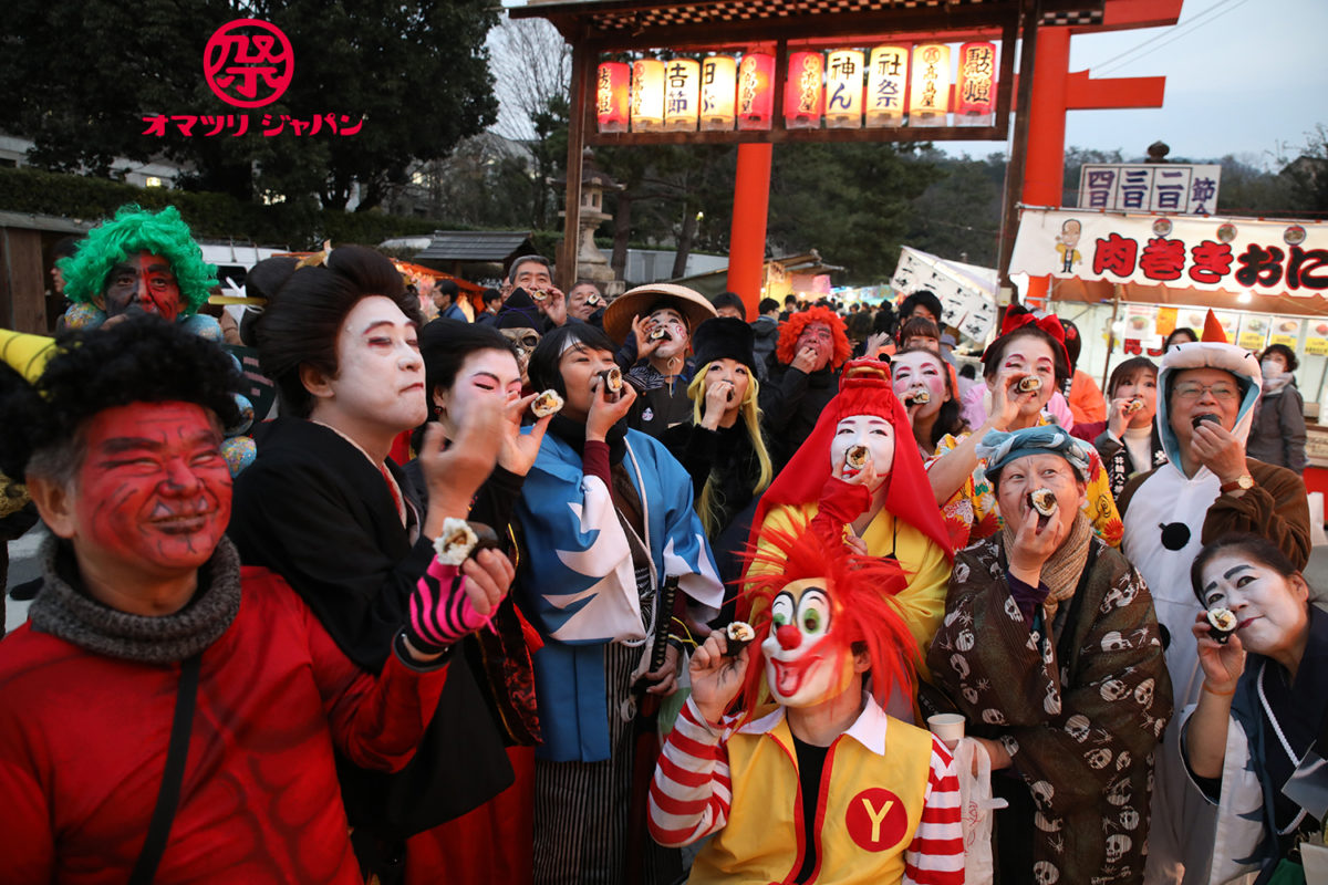 吉田神社でのおばけたちのメインイベントは恵方巻のかぶりつき!