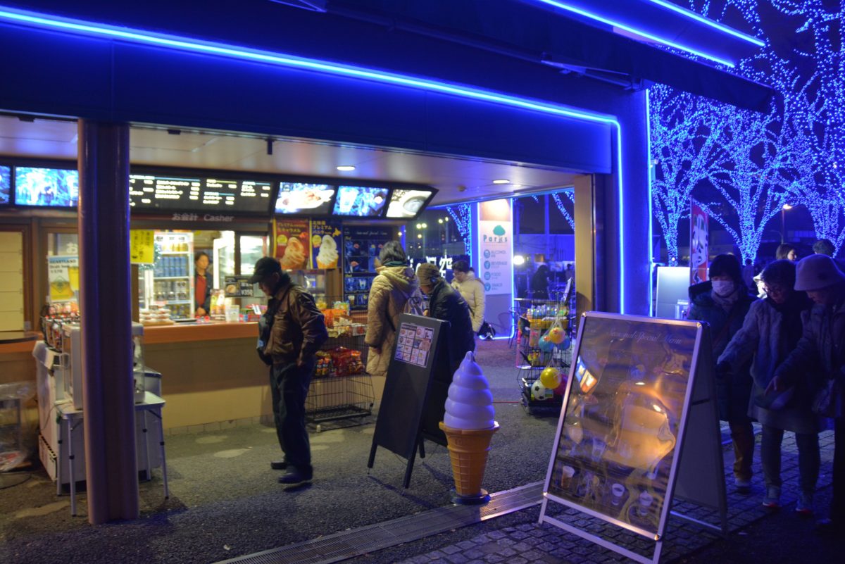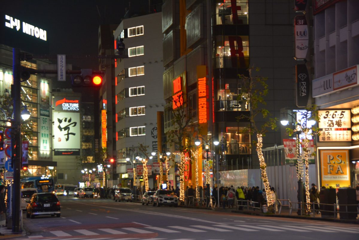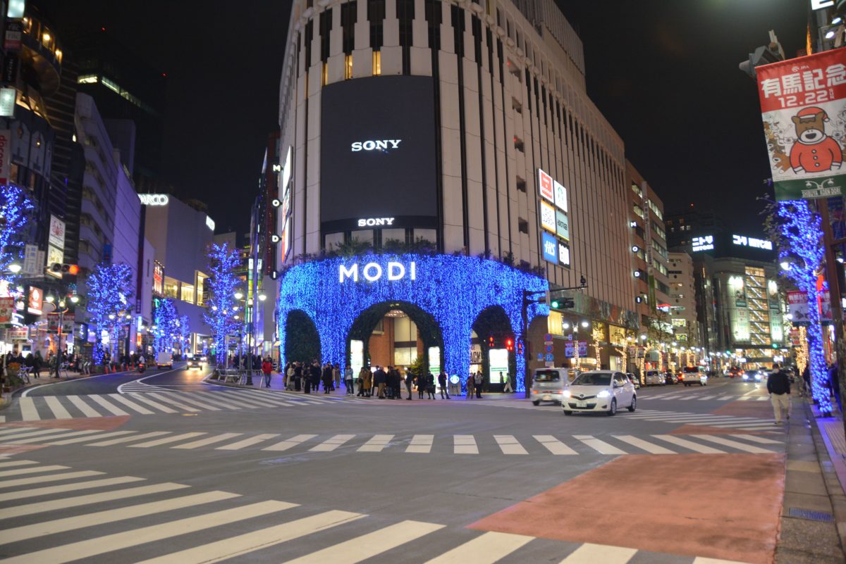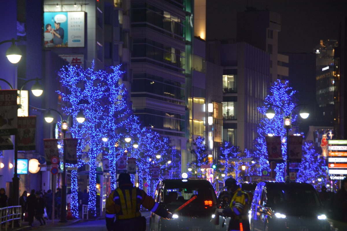 渋谷公園通りに踏み出せば「青の洞窟」の中に入り込んだことになります。通りは青一色のイルミネーションで照らし出されます。青のライトが並木道を作り波打つかのようです。