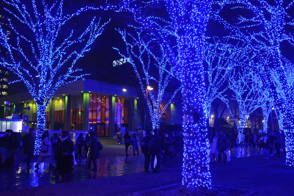 渋谷公園通りを数百メートル歩くと代々木公園に突き当たります。公園内のケヤキ並木は青一色のイルミネーションで覆われます。日中の姿とは大きく異なる異次元の世界です。落ち着いた雰囲気に包まれ、ロマンチックなムードが感じられます。