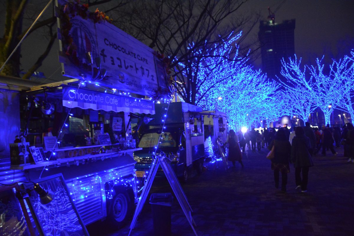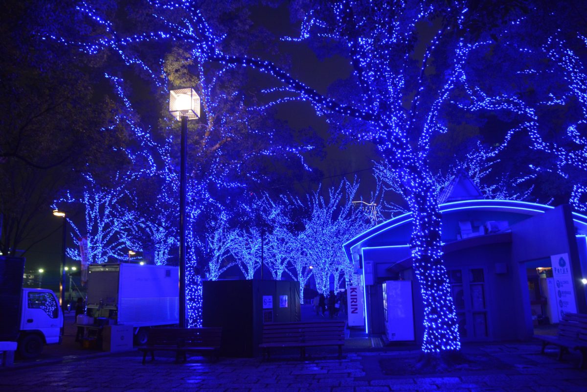 「青の洞窟」の期間中、代々木公園や渋谷公園通りは青一色のイルミネーションに染め上げられます。異次元空間に入り込んだような別世界でロマンチックな夜をすごすことができます。